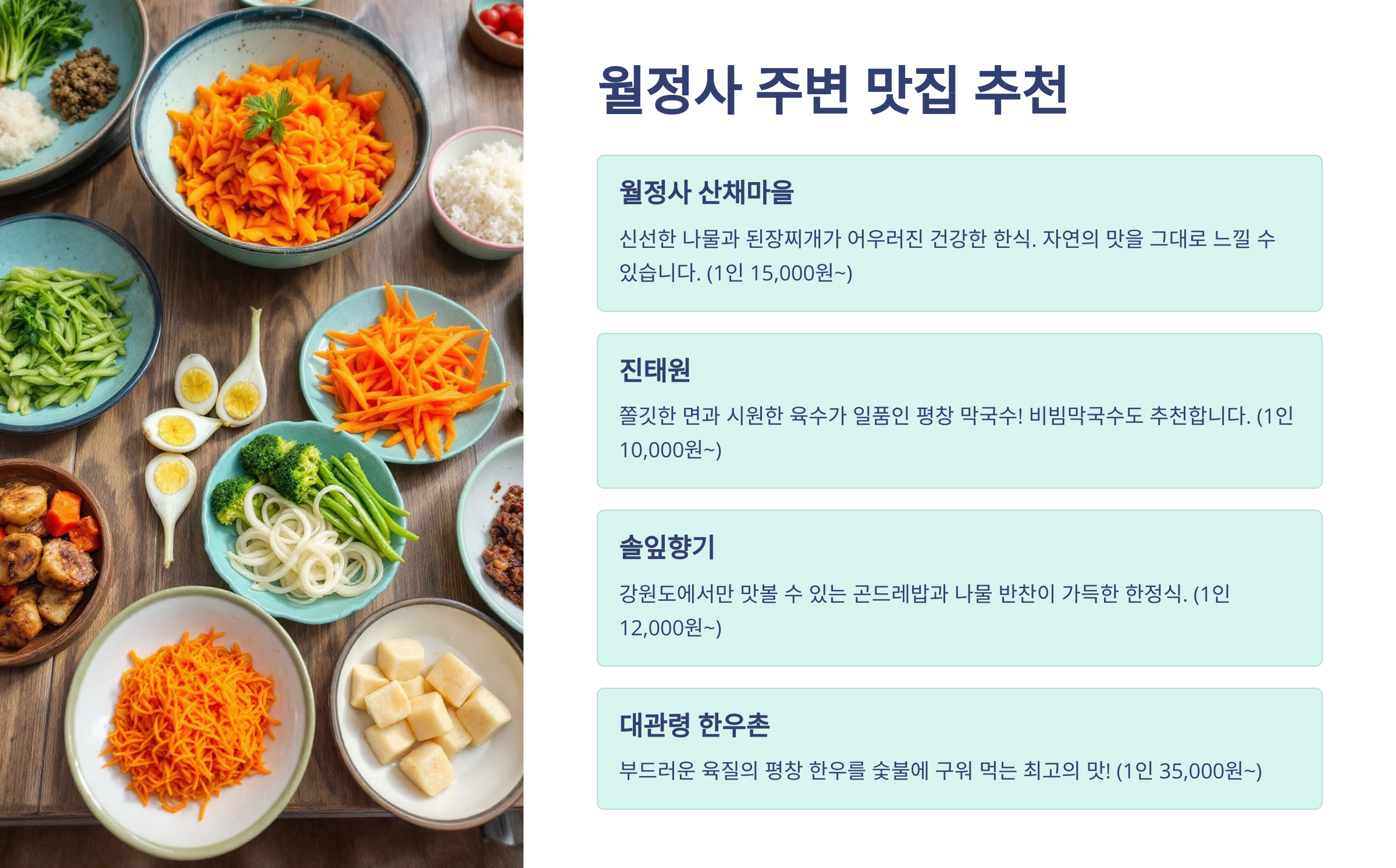 👉 다음으로, 월정사 주변 맛집 추천을 알아볼까요? 🍜