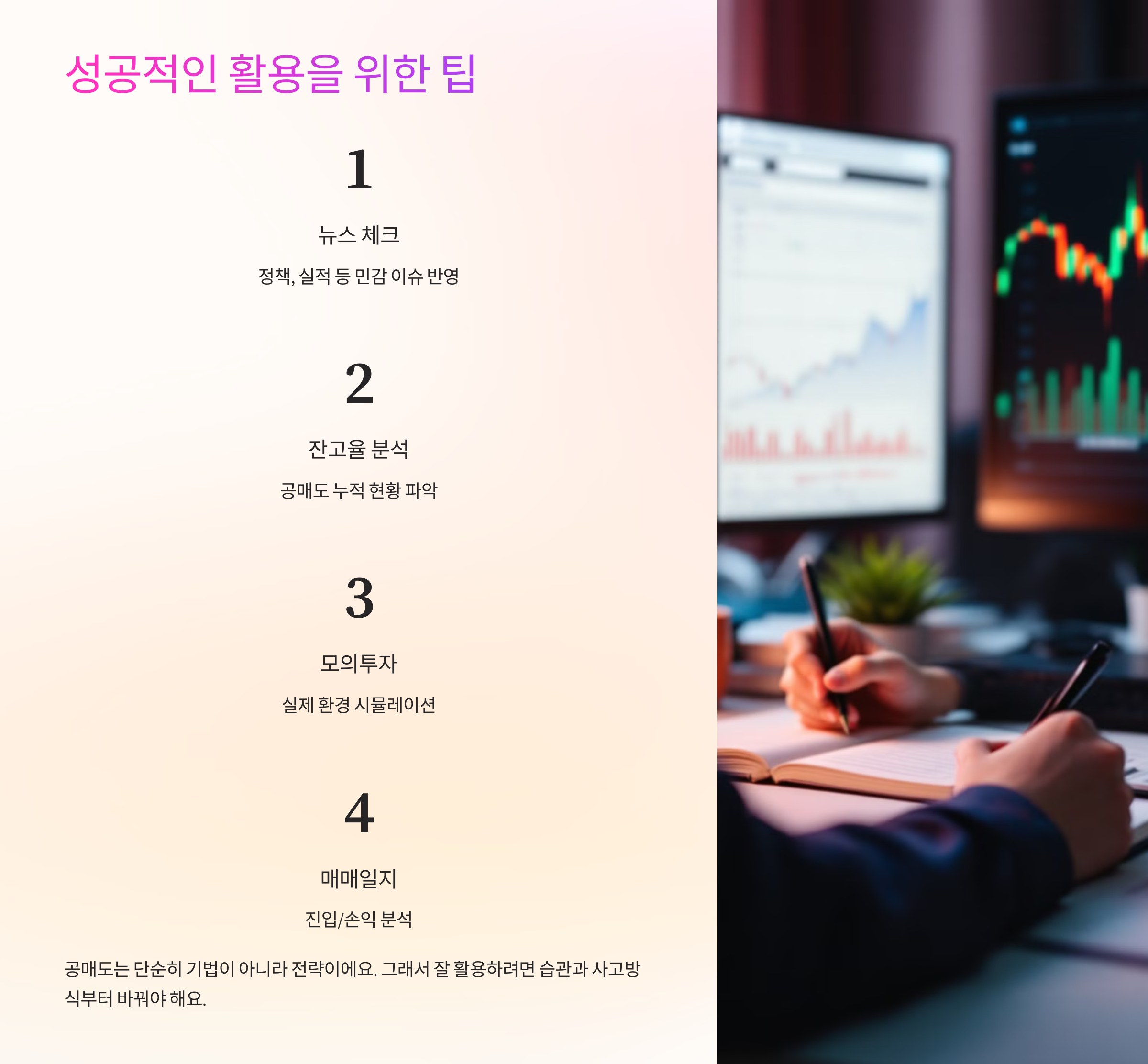 공매도는 단순히 기법이 아니라 전략이에요. 그래서 잘 활용하려면 습관과 사고방식부터 바꿔야 해요. 지금부터 실전에서 자주 쓰이는 꿀팁들을 알려드릴게요