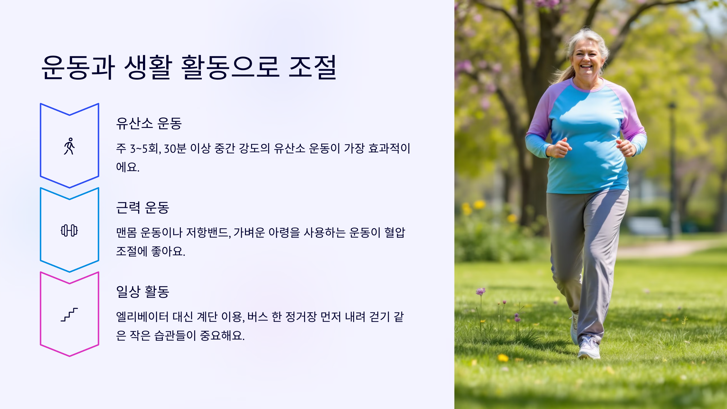 식습관은 단번에 바꾸기 어렵지만, 하루 한 끼부터라도 바꿔보는 게 중요해요. 식탁 위 소금통을 치우는 것만으로도 큰 변화가 시작돼요. 다음은 고혈압에 효과적인 운동과 활동 습관을 알려드릴게요! 🏃