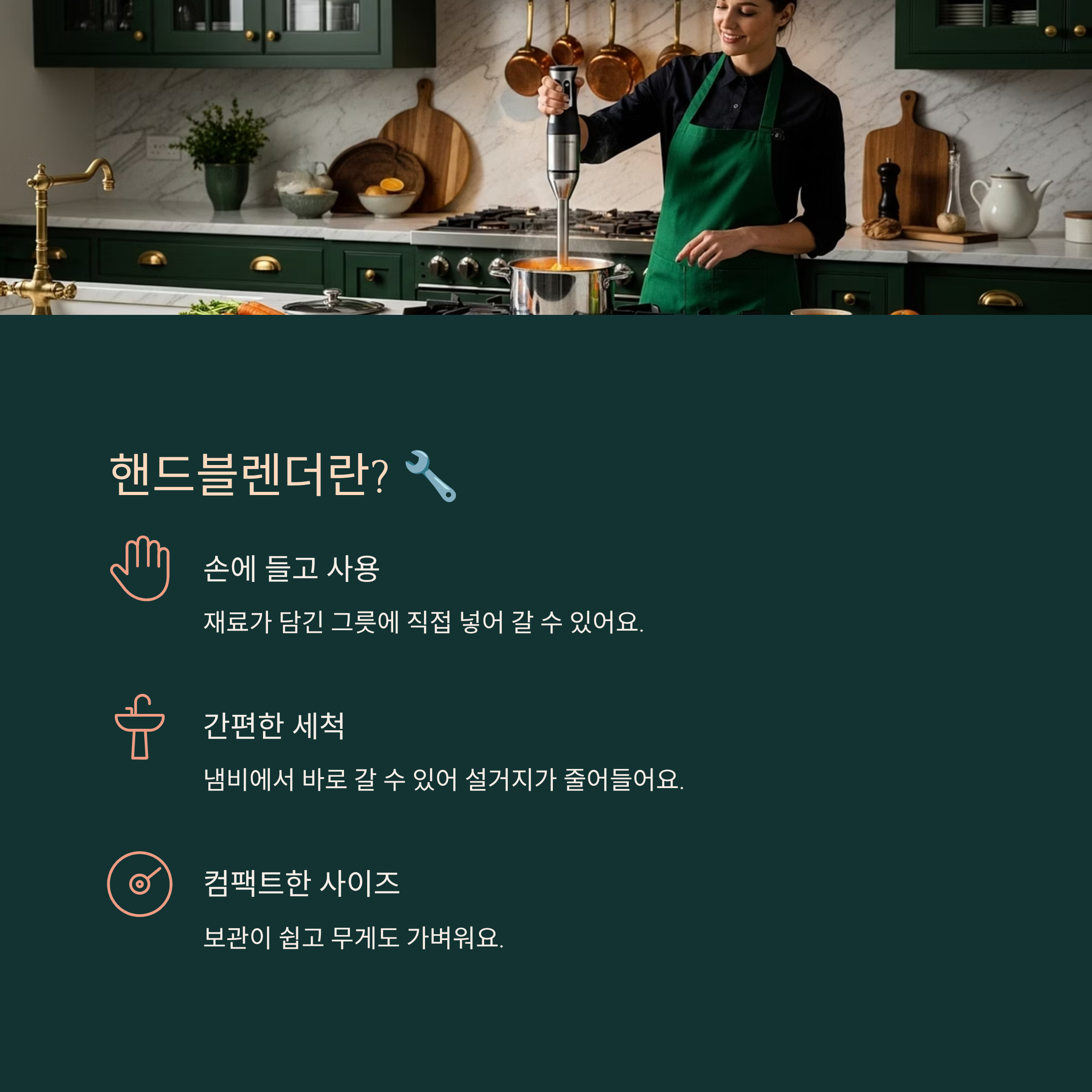 인터넷 후기만 맹신하기보다, 본인의 요리 패턴을 중심에 두고 선택하는 게 핵심이에요. 너무 예쁜 디자인에만 혹하지 말고요! 주방 기기에서 실용성은 절대 무시할 수 없어요. 특히 핸드블렌더는 매일 써도 안 질릴 만큼 편해야 진짜 잘 산 거예요. 😉