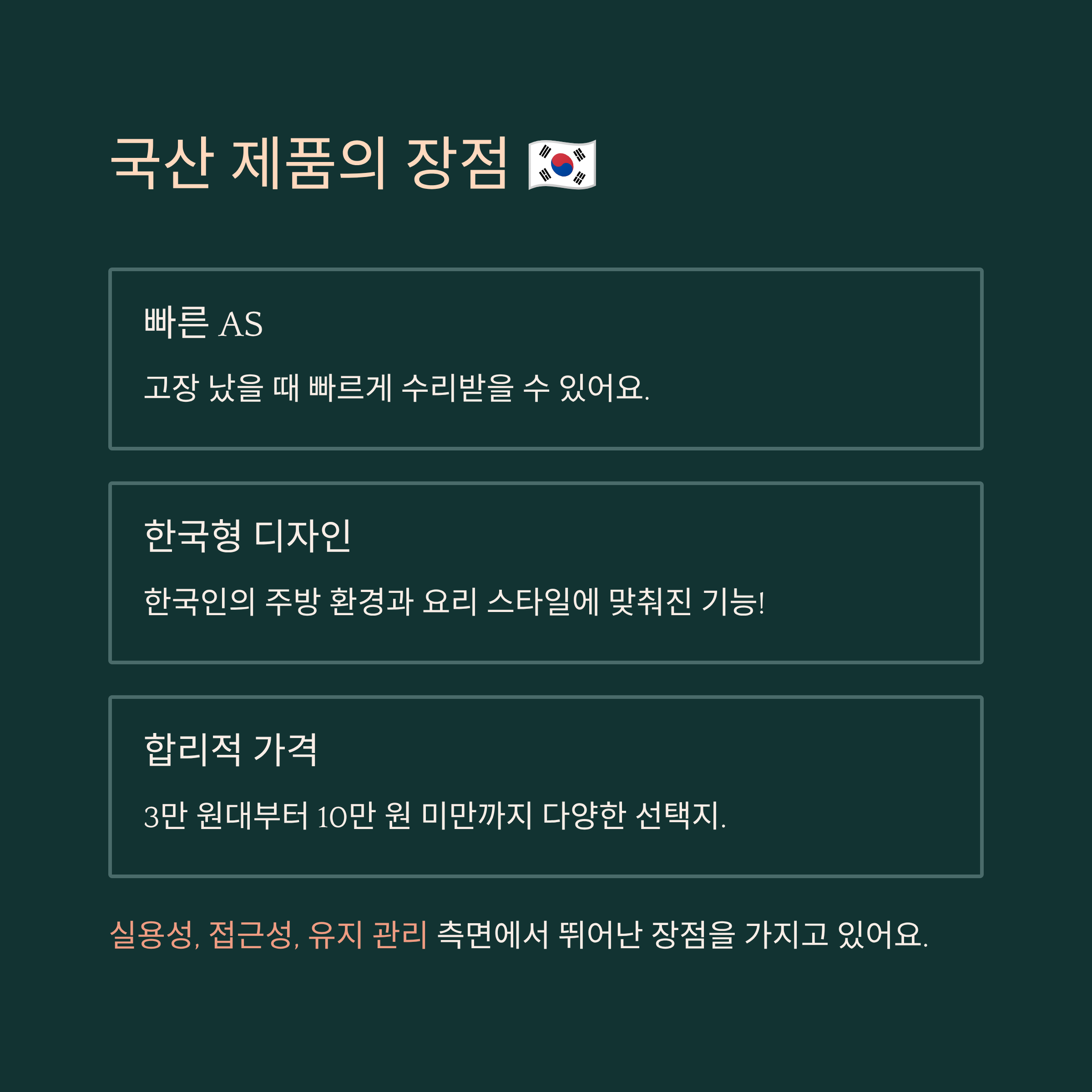 이처럼 국산 제품은 실용성, 접근성, 유지 관리 측면에서 뛰어난 장점을 가지고 있어요. 특히 자주 쓰는 주방도구라면 ‘AS 가능성’이 큰 고려 요소가 되니까요. 😉