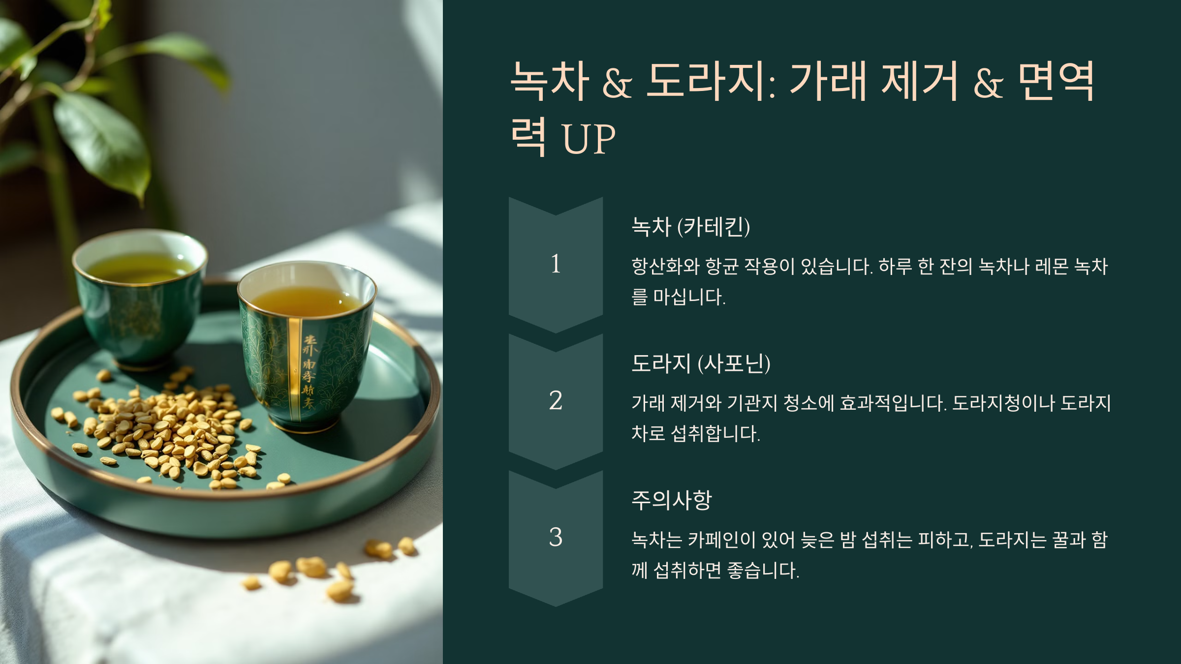 녹차 & 도라지: 가래 제거 & 면역력 UP ☕