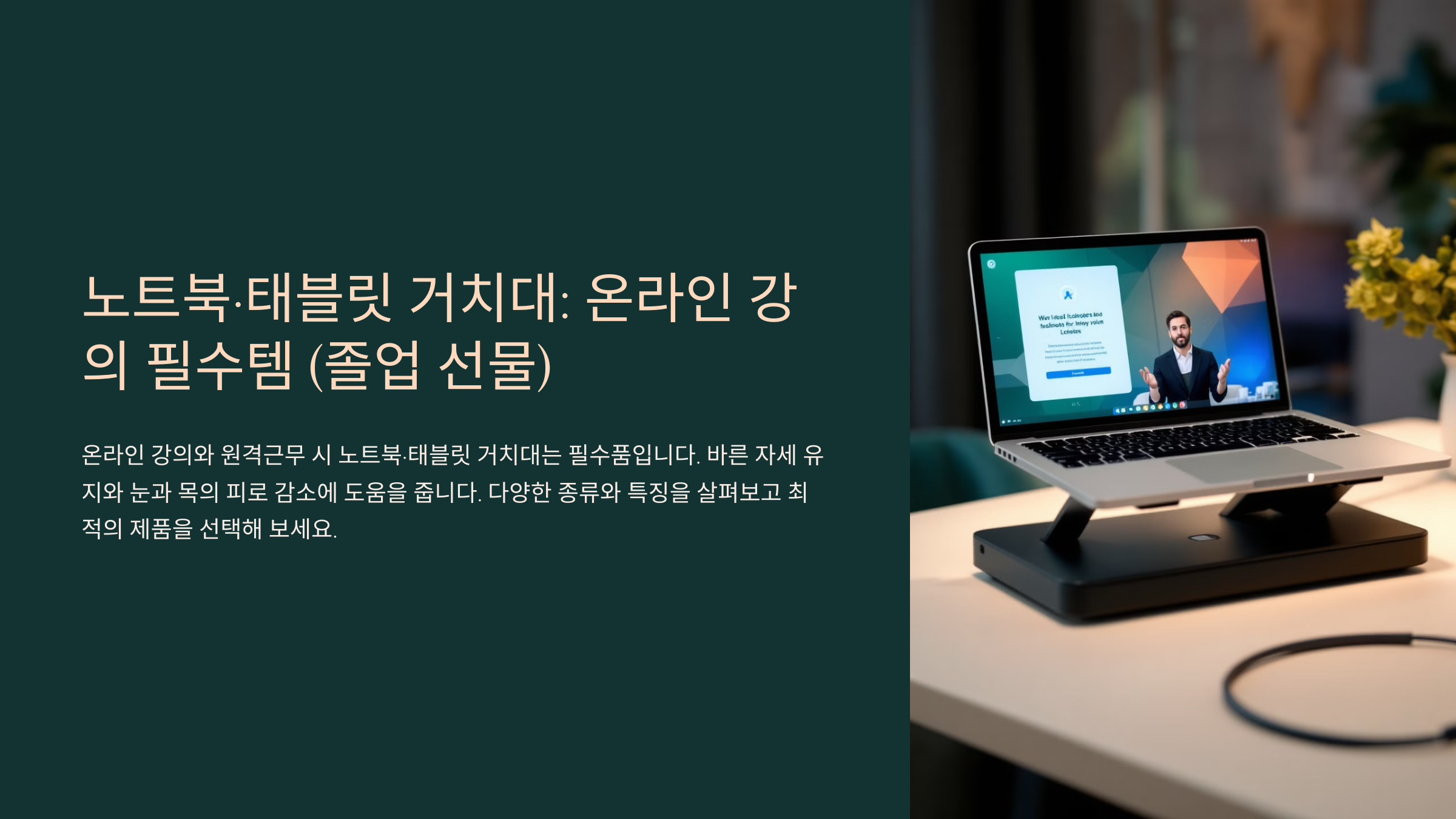 온라인 강의를 듣거나 원격근무를 할 때, 노트북과 태블릿을 편하게 사용할 수 있는 거치대는 필수템이에요. 오랜 시간 화면을 바라봐야 하기 때문에 바른 자세를 유지하고, 눈과 목의 피로를 줄이는 것이 중요하죠. 그렇기 때문에 적절한 거치대를 선택하는 것이 필수랍니다.