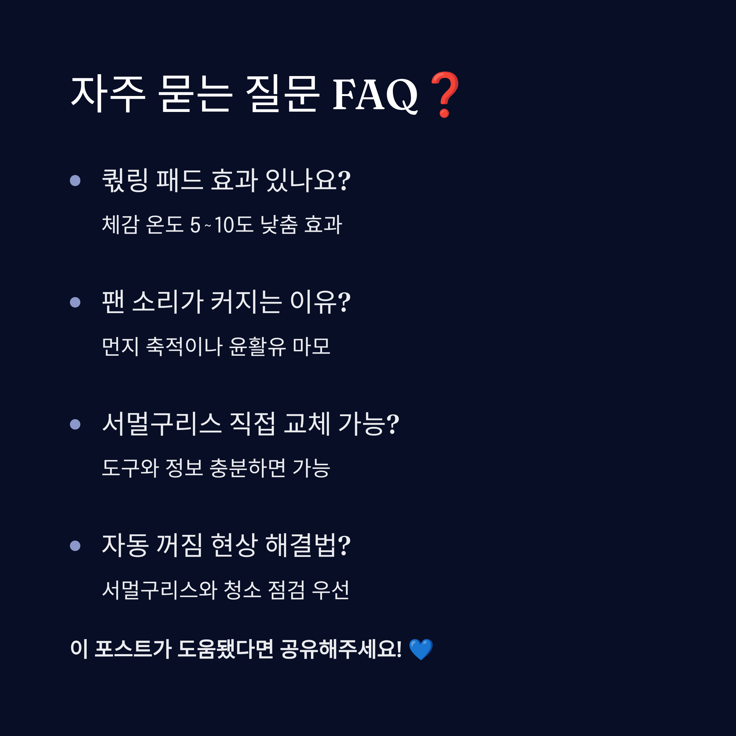 이제 발열을 막는 유지관리 방법을 이어서 볼게요! 다음 박스에서 마저 보여드릴게요. 마지막은 FAQ도 있어요! 🤓