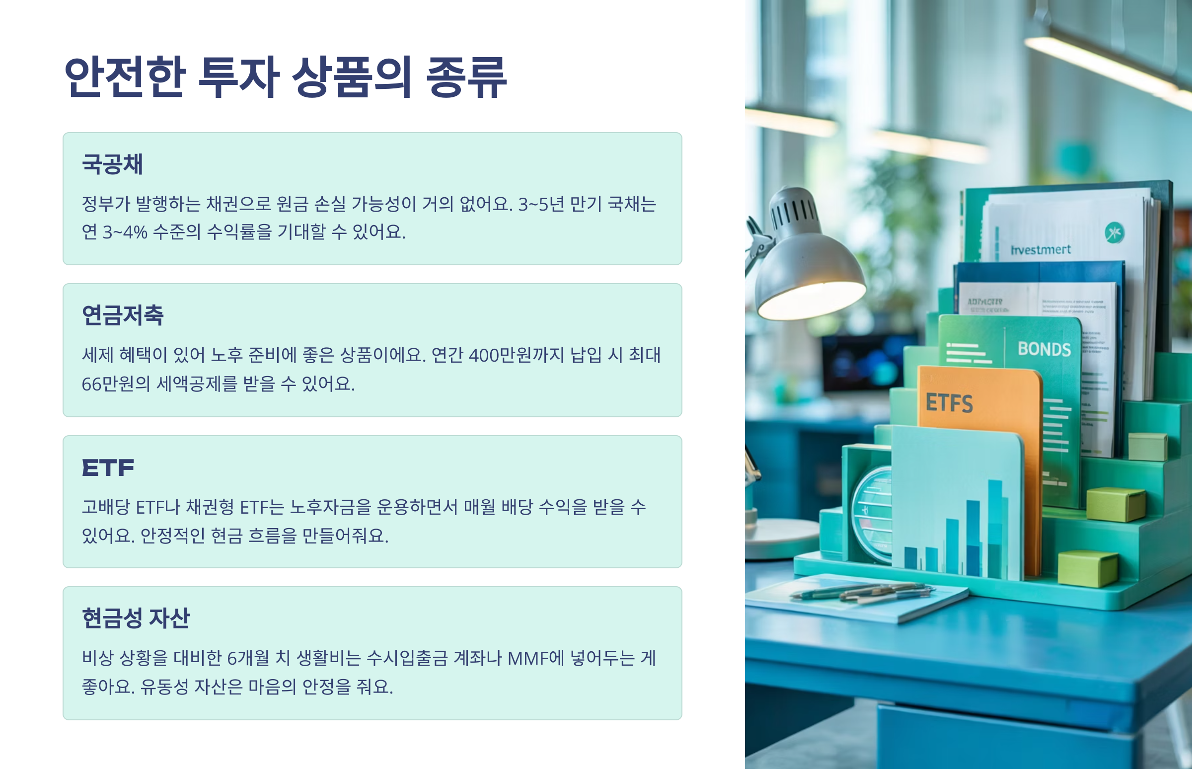 내가 생각했을 때 노후자금 투자의 핵심은 ‘원금 보호’와 ‘꾸준한 현금 흐름’이 가장 중요한 포인트예요. 눈에 보이는 수익률보다 지속 가능하고 예측 가능한 소득이 필요한 시기니까요.