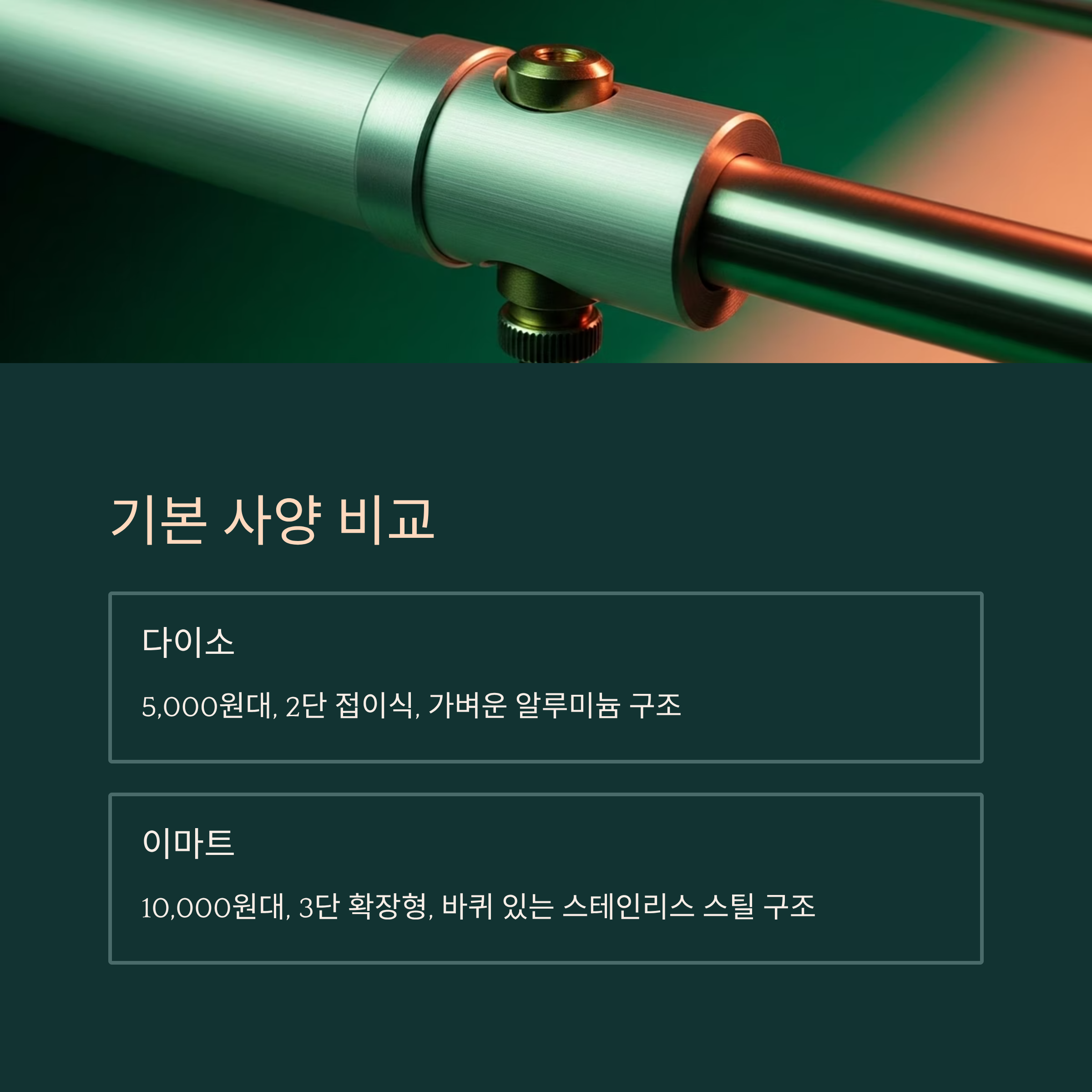📏 다이소 vs 이마트 기본 스펙 비교표 🛠️