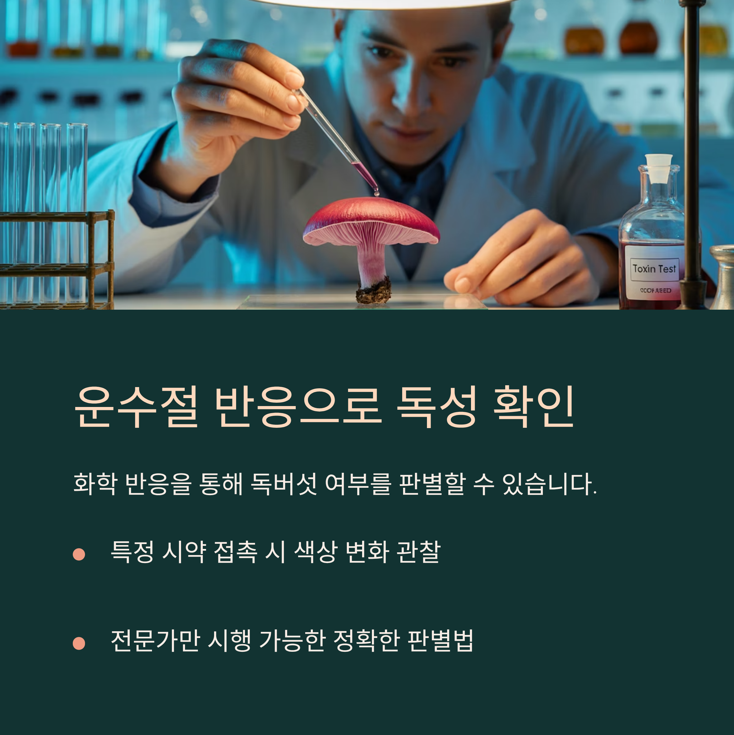 이런 반응은 일부 독성분이 황이나 금속과 반응하여 색깔을 바꾸는 성질을 이용한 것이지만, 모든 독버섯이 반응하는 건 아니에요. 과학적으로 검증되지 않은 부분도 많아서 절대적인 기준으로 믿어선 안 돼요.