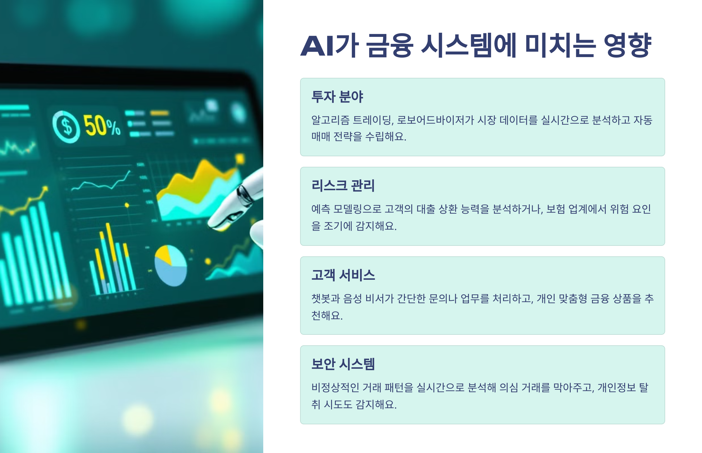 이런 변화 덕분에 금융기관들은 더 빠르고 정확하게 고객을 응대하고, 비용은 절감하고, 수익은 극대화할 수 있게 되었어요. 바로 이 지점에서 AI는 ‘효율’과 ‘예측’이라는 핵심 가치를 실현하고 있는 거예요