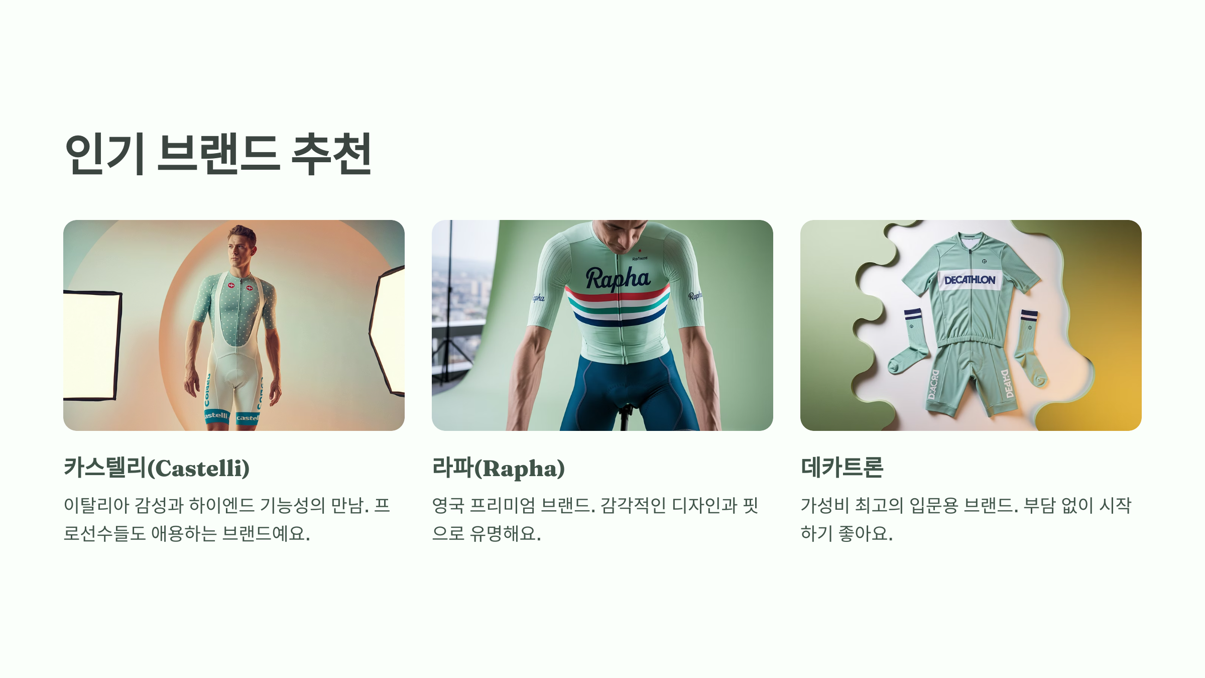 다음은 자전거복 인기 브랜드 추천으로 넘어가 볼게요! 🏷️