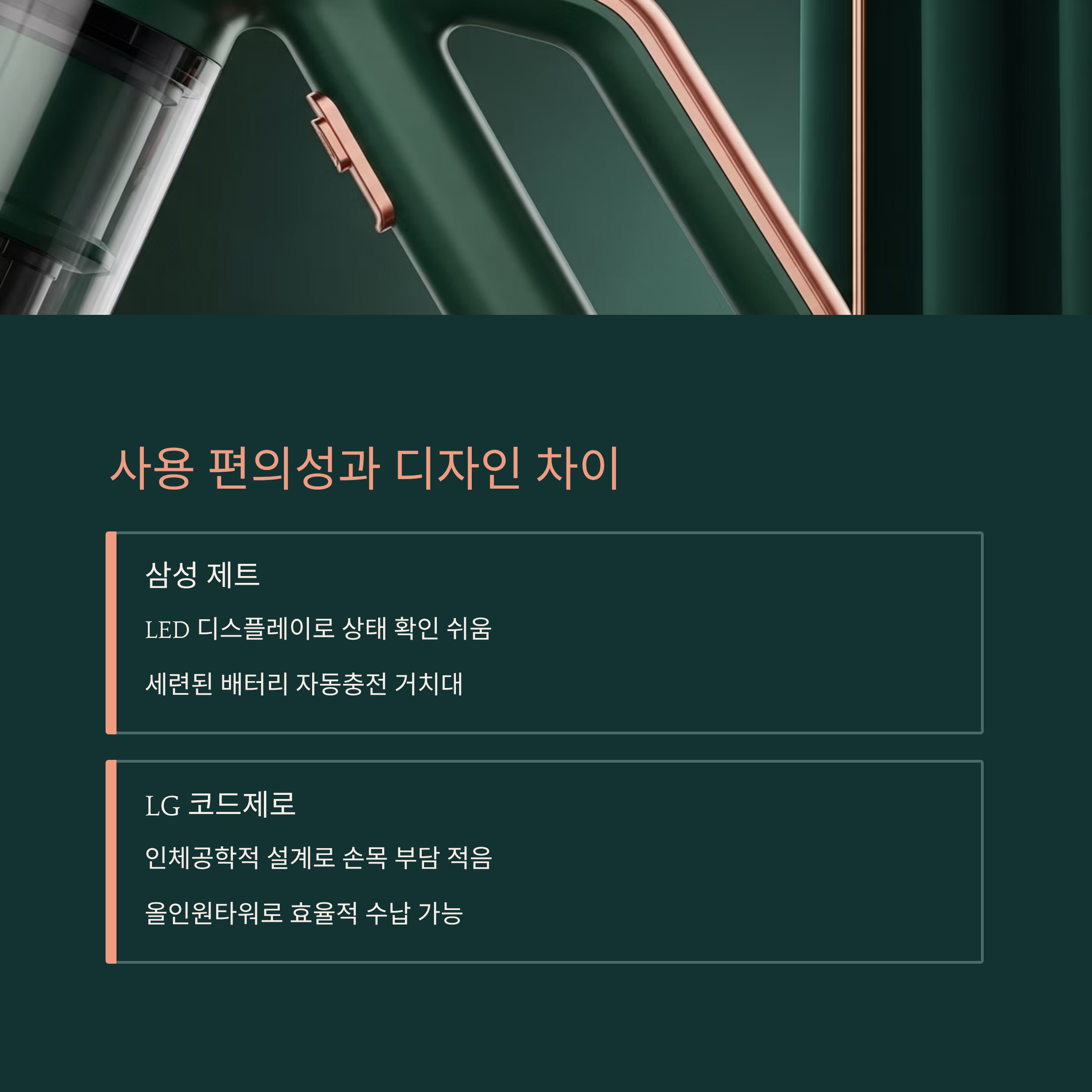 📌 이 글은 삼성과 LG 무선청소기 사용자 경험을 바탕으로 작성된 정보이며, 실제 성능은 사용 환경, 모델 사양 등에 따라 달라질 수 있어요. 구매 전 공식 스펙 및 고객센터 확인을 권장해요.