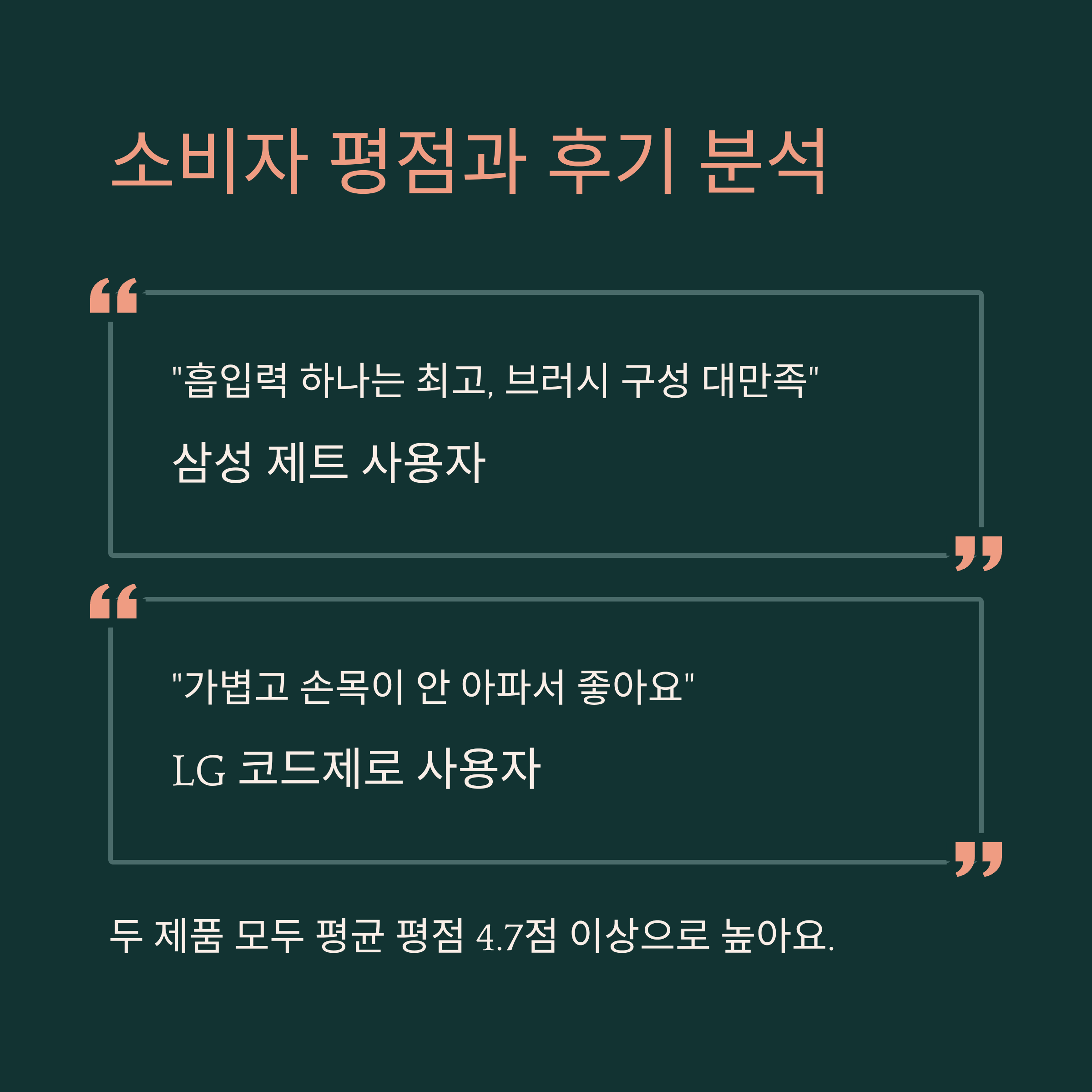 결론적으로 두 브랜드 모두 평점은 훌륭하지만, 소비자가 어떤 기준을 중요하게 생각하느냐에 따라 호불호가 명확히 나뉘는 모습이에요. 구매 전 자신에게 더 잘 맞는 ‘포인트’를 우선순위로 정하는 게 가장 중요한 팁이에요.