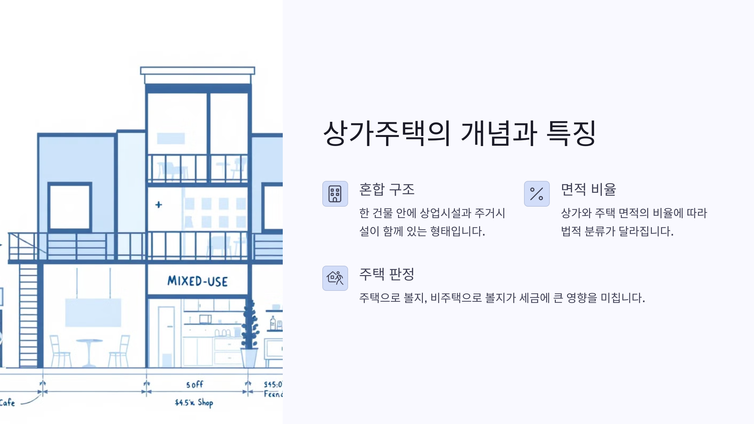 상가 면적과 주택 면적의 비율에 따라 법적 분류가 달라지며, 이는 세금과 주택 수 판정에도 큰 영향을 미쳐요. ‘이 건물이 주택으로 분류될지, 아니면 비주택으로 간주될지’가 핵심이에요.