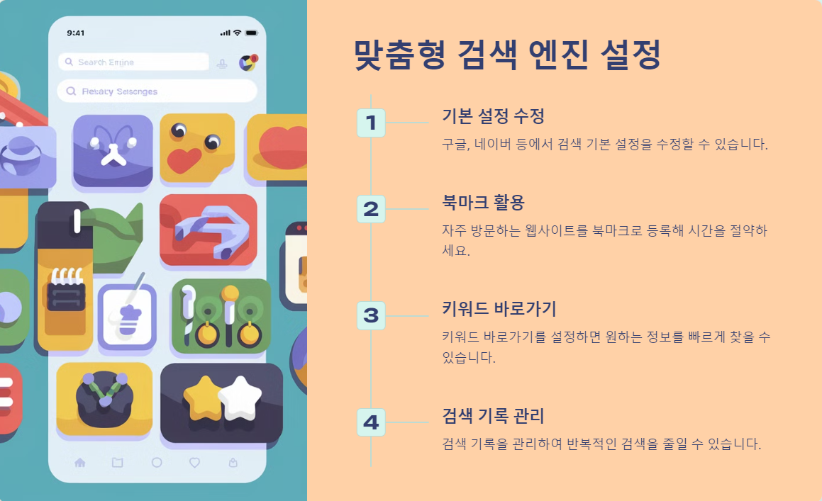 맞춤형 검색 엔진 설정은 스마트폰 검색 경험을 크게 향상시킵니다.