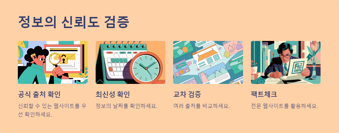 정보의 신뢰도를 검증하는 습관을 가지는 것이 중요합니다.