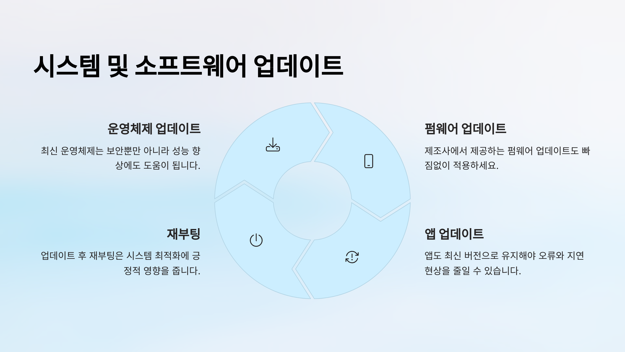 업데이트 후 재부팅은 시스템 최적화에 긍정적 영향을 줍니다.