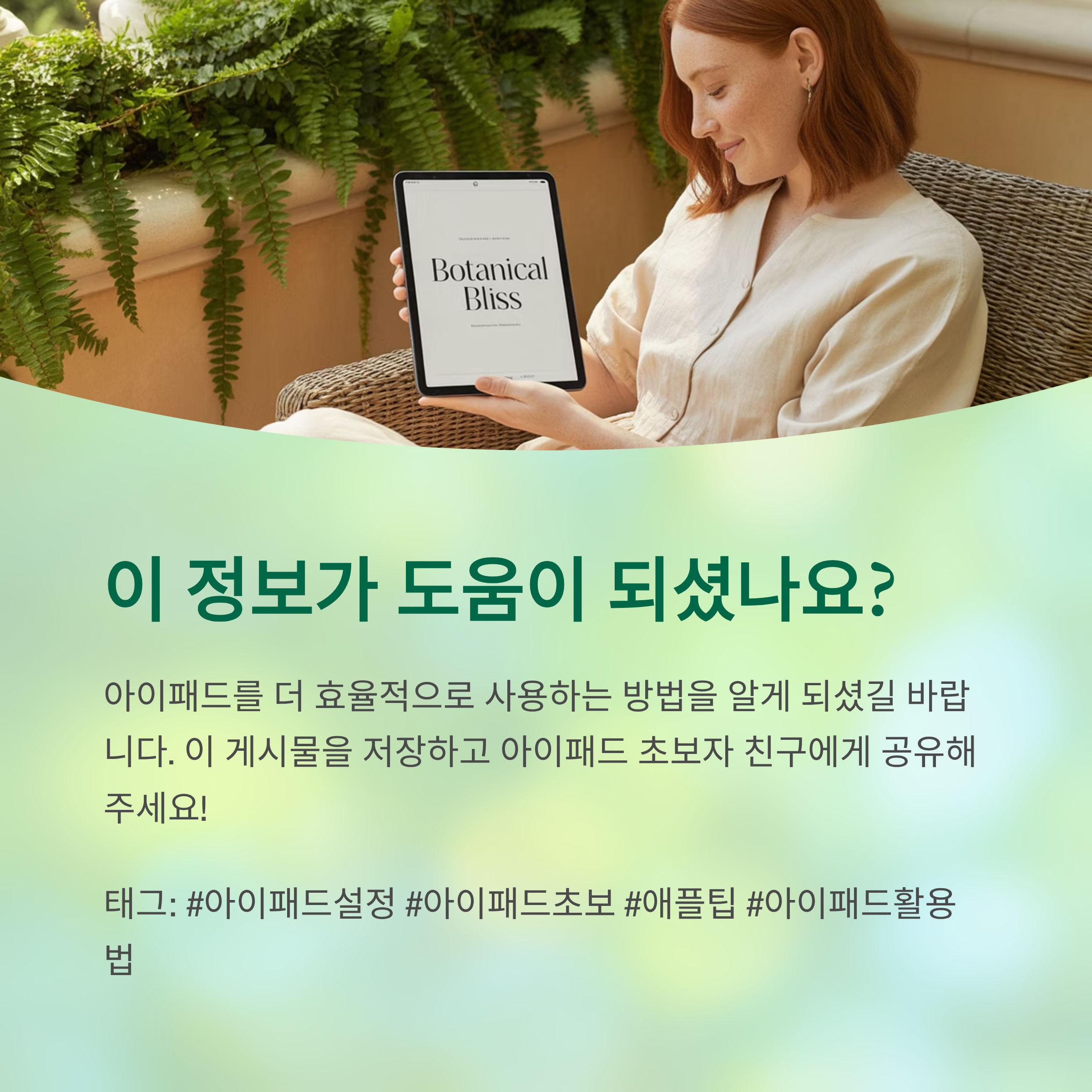 이 표를 참고해서 차근차근 따라 하면, 초보자도 금방 아이패드를 내 스타일에 맞게 세팅할 수 있어요. 어렵게 느껴질 필요 전혀 없어요! 😊
