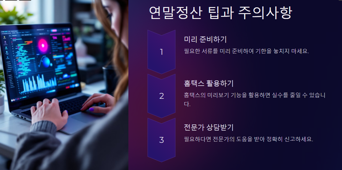 연말정산은 국세청 홈택스를 통해 확인 및 준비할 수 있습니다.