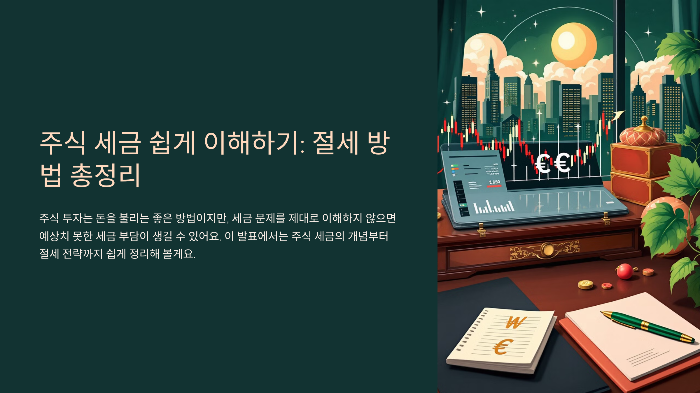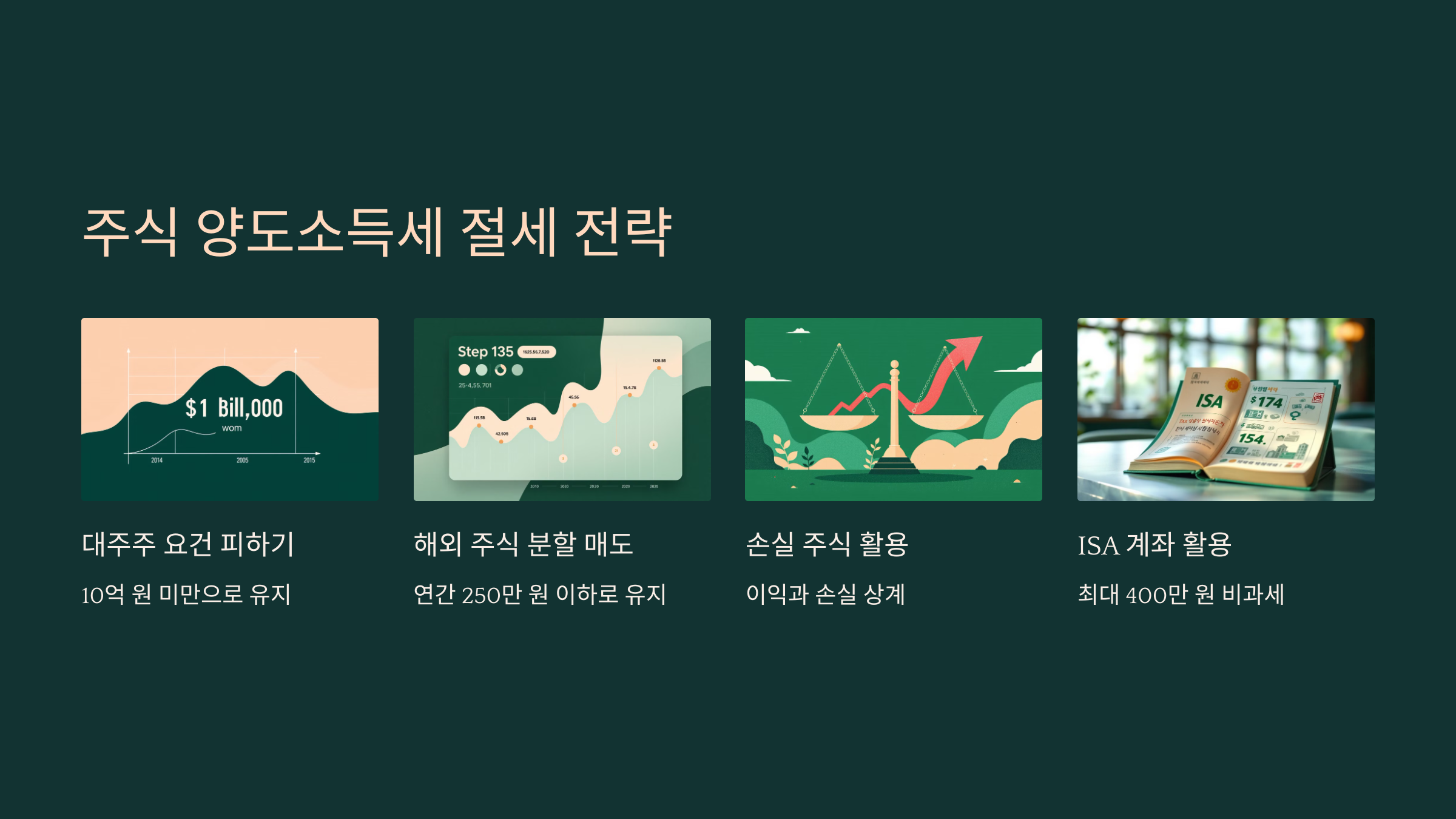주식 투자로 얻은 수익이 크면 세금 부담도 커질 수 있어요. 하지만 몇 가지 **절세 전략**을 활용하면 합법적으로 세금을 줄일 수 있어요! 특히 대주주 요건에 해당하는 투자자나 해외 주식 투자자는 전략적으로 접근하는 것이 중요해요. 😉