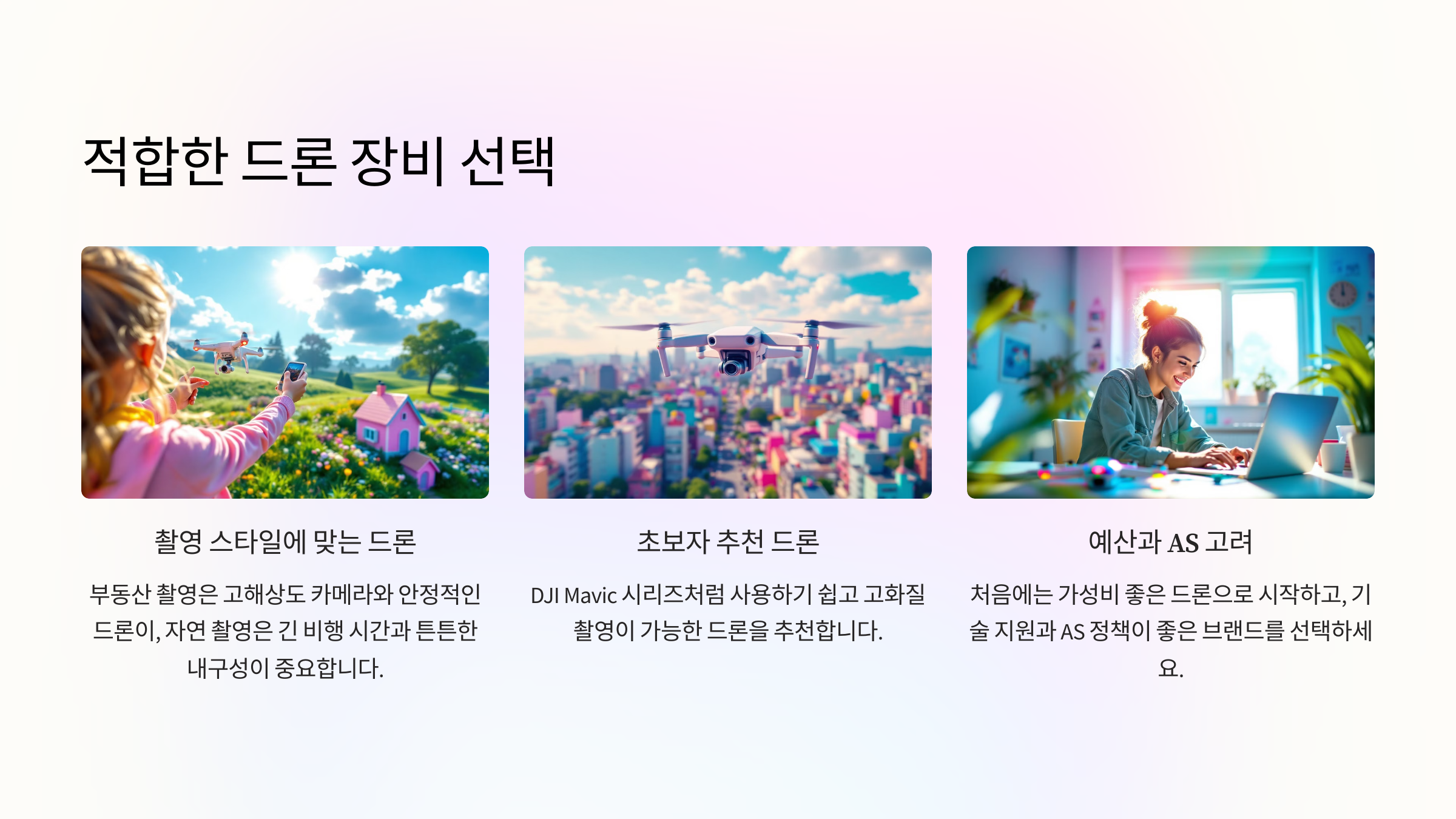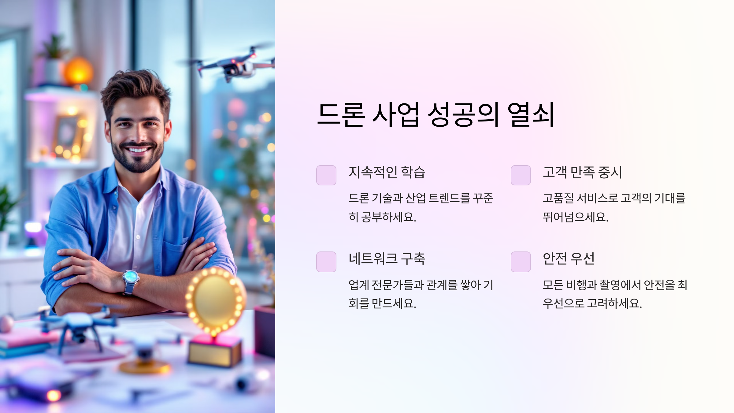 드론은 단순히 비행만 잘하면 되는 것이 아니라, 촬영 기술, 편집 능력, 고객 관리까지 다방면의 노력이 필요해요. 아래에서는 드론 사업을 처음 시작하는 사람들에게 꼭 필요한 팁들을 하나씩 소개할게요.