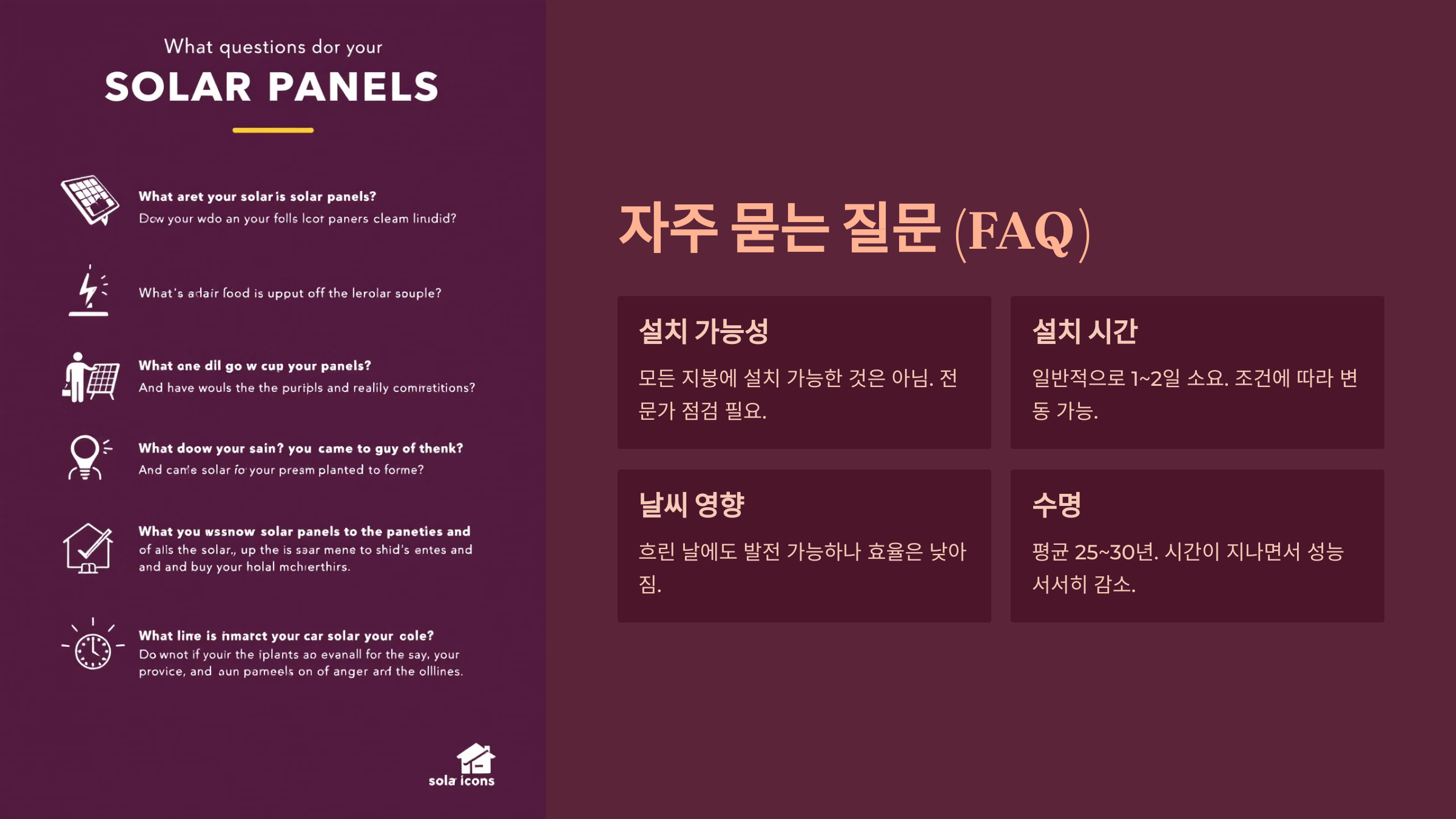 A4. 대부분의 패널은 보증기간이 있어요. 문제가 발생하면 설치업체나 제조사에 문의해 수리 서비스를 받을 수 있어요.