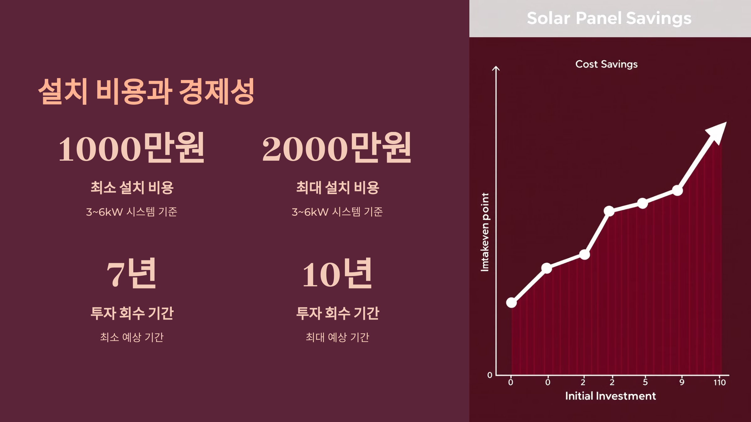 태양광 패널은 설치 후에는 전기 요금 절감 효과가 크기 때문에 약 7~10년 안에 초기 투자 비용을 회수할 수 있어요. 특히 전력 사용량이 많은 가정이나 기업은 장기적인 경제적 이점을 누릴 수 있답니다.