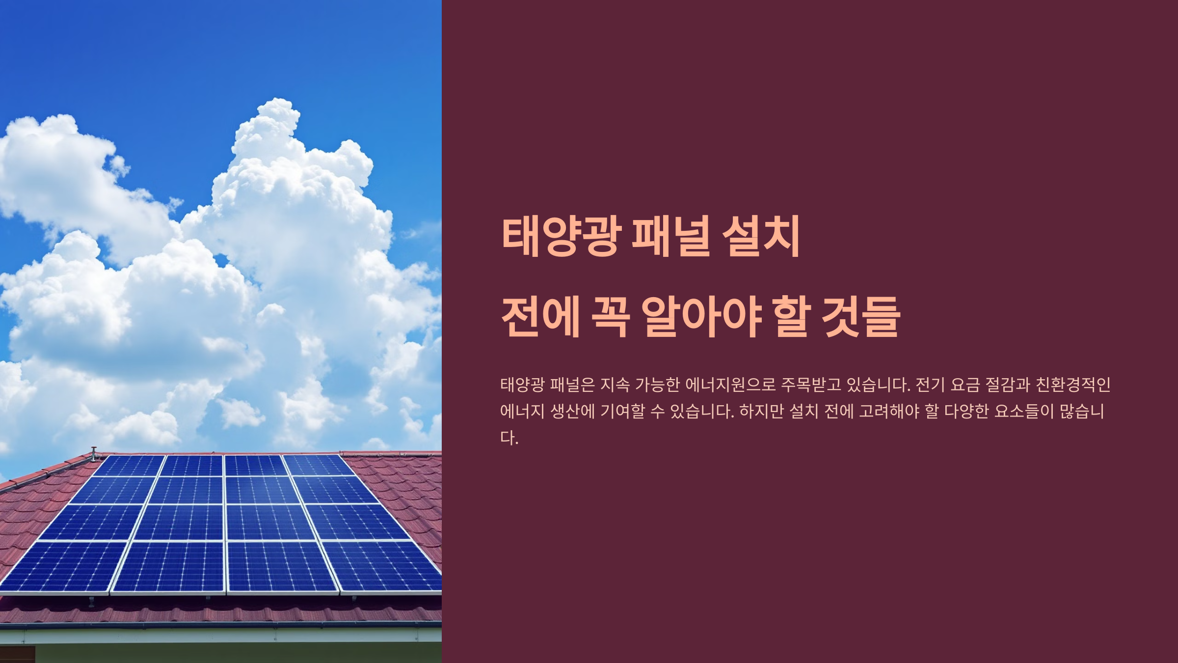 이 글에서는 태양광 패널 설치 전 반드시 알아야 할 것들을 단계별로 설명하며, 올바른 선택을 도와줄 실질적인 정보를 제공합니다. 이제 하나씩 자세히 알아보도록 할게요!