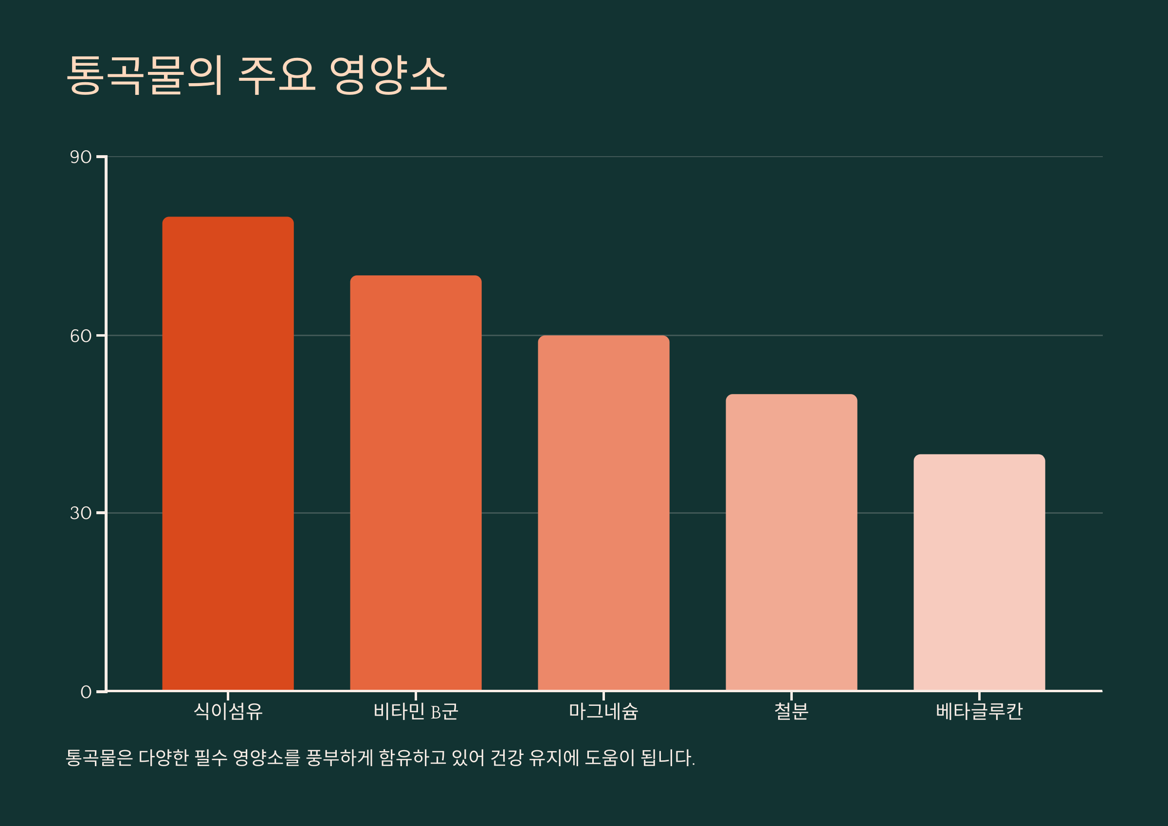 📢 이처럼 통곡물은 필수 영양소를 풍부하게 함유하고 있어 건강을 유지하는 데 큰 도움이 돼요. 다양한 통곡물을 골고루 섭취하는 것이 중요해요!