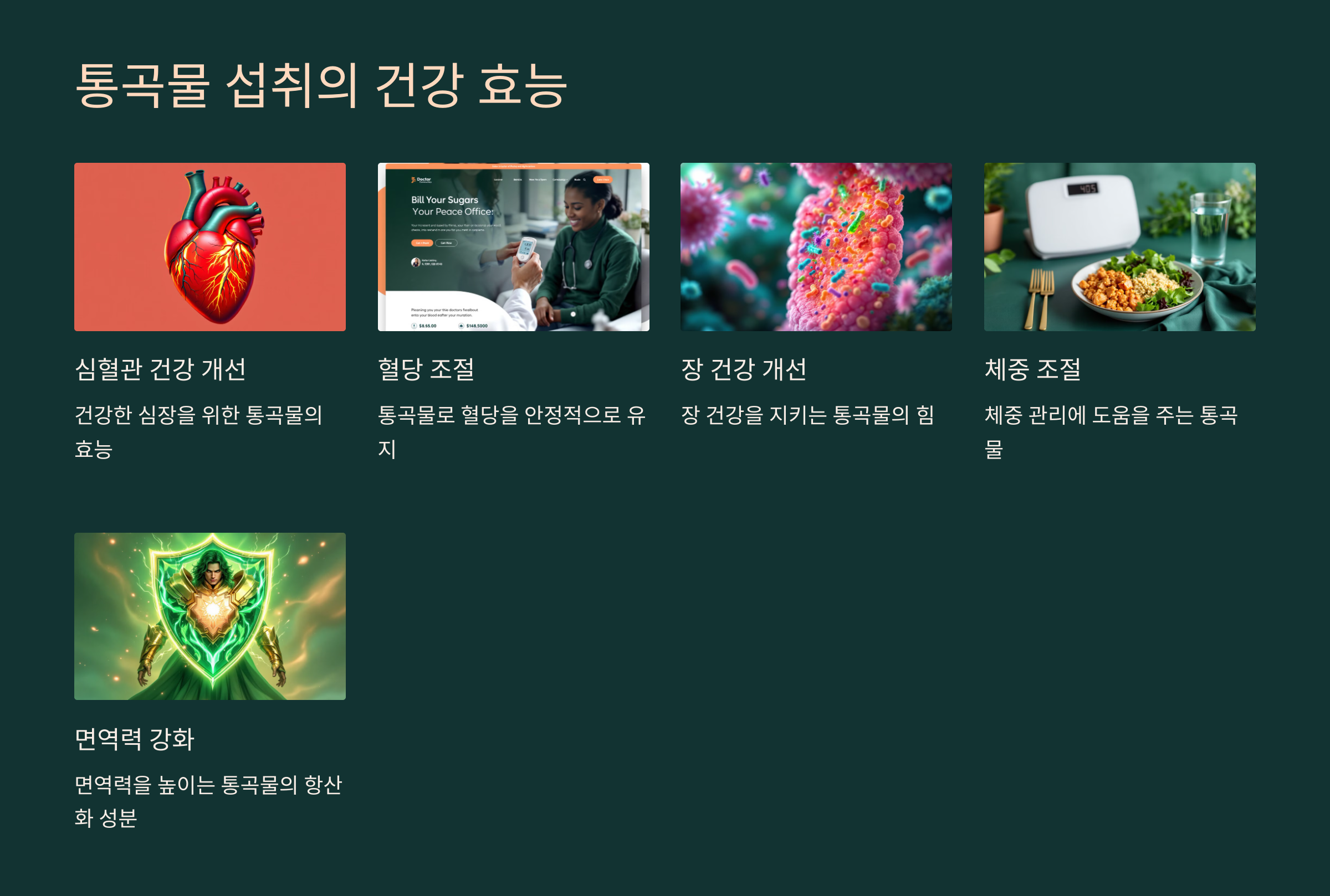 💖 통곡물을 정기적으로 섭취하면 다양한 건강상의 이점을 얻을 수 있어요. 특히, 심혈관 건강, 혈당 조절, 체중 관리, 장 건강 개선 등에 효과적이에요.