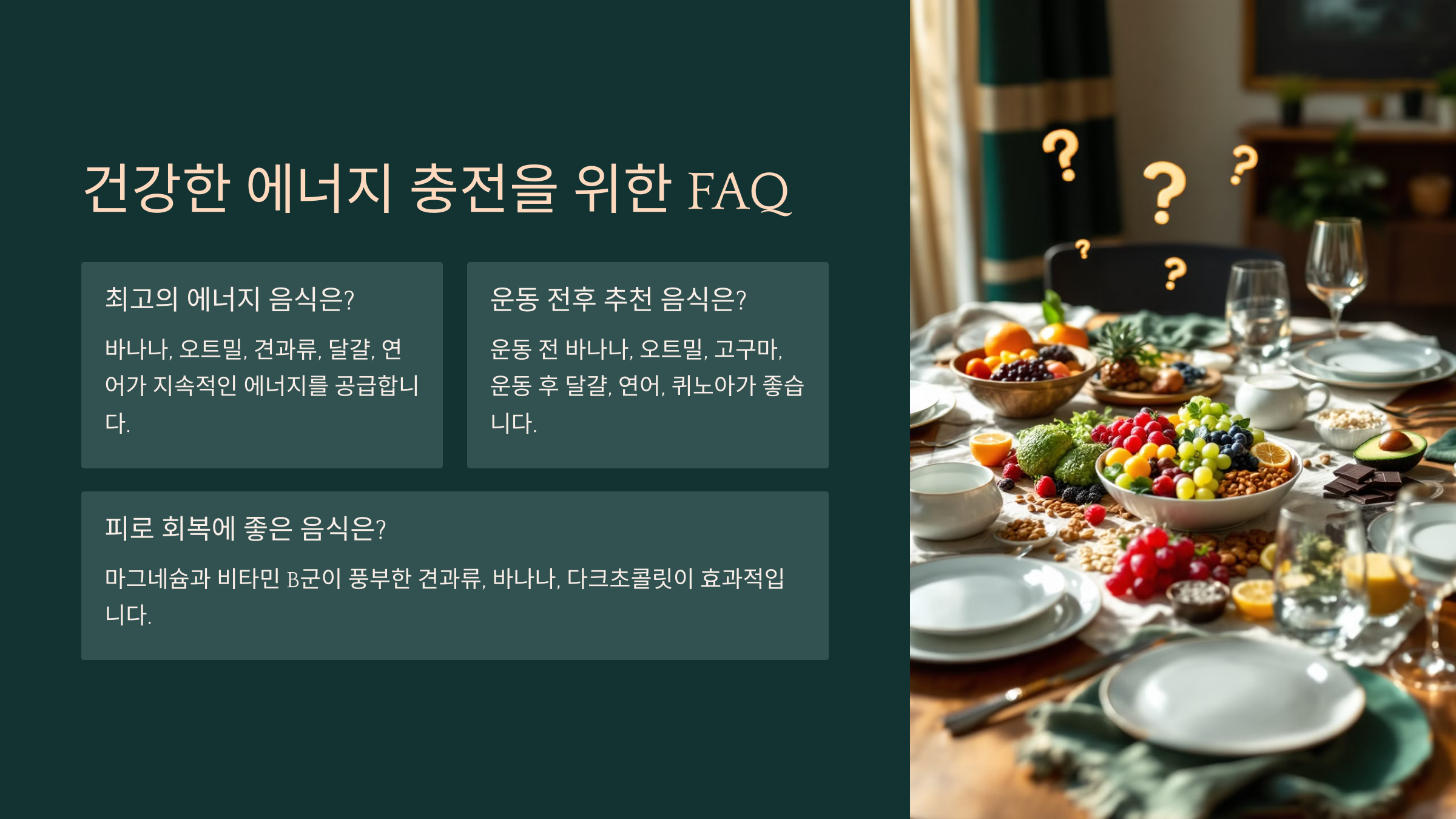 Q1. 에너지를 높이는 데 가장 좋은 음식은 무엇인가요?