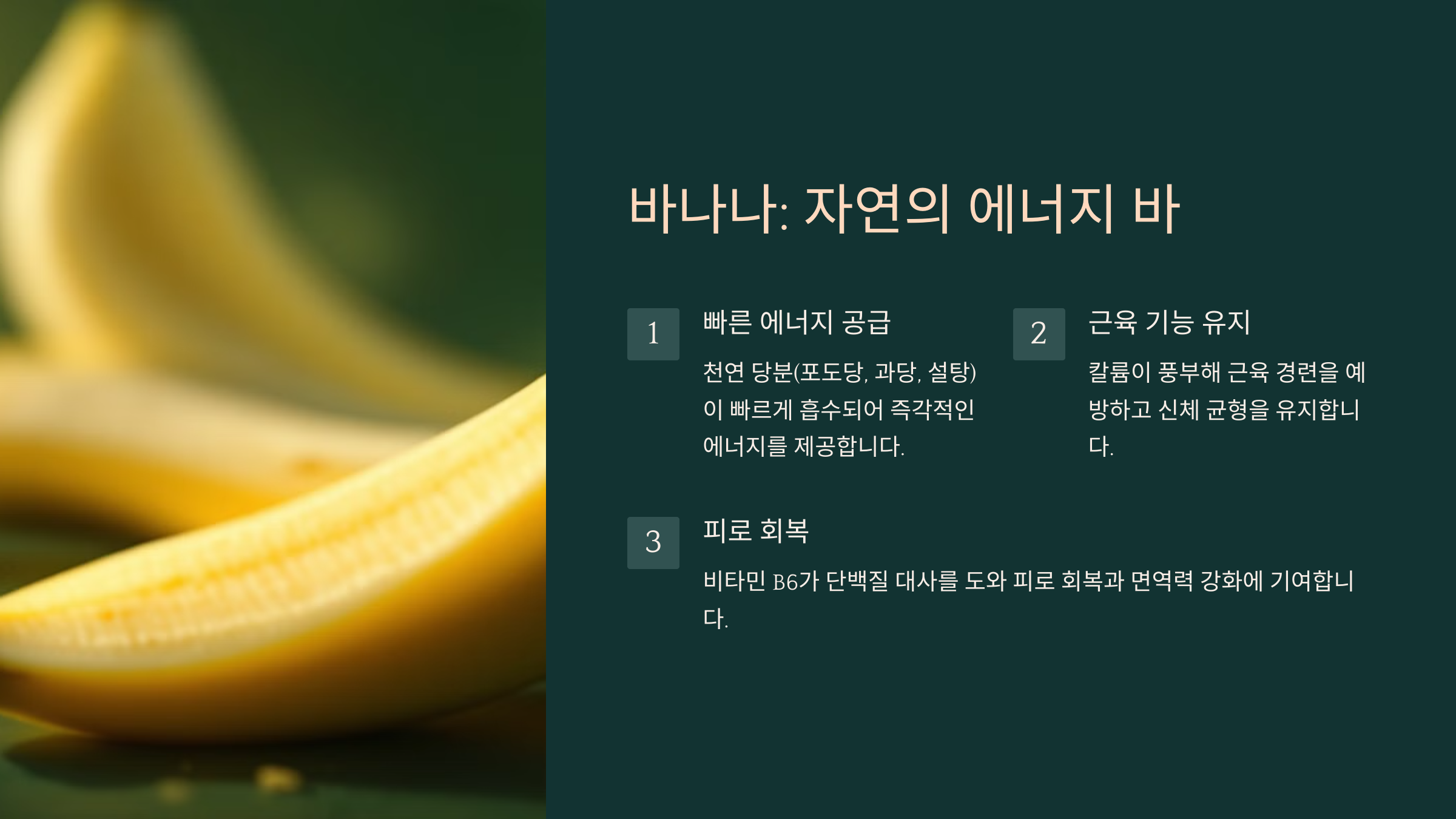 바나나는 자연이 준 에너지 바라고 불릴 만큼 피로 회복과 에너지 보충에 탁월한 과일이에요.
