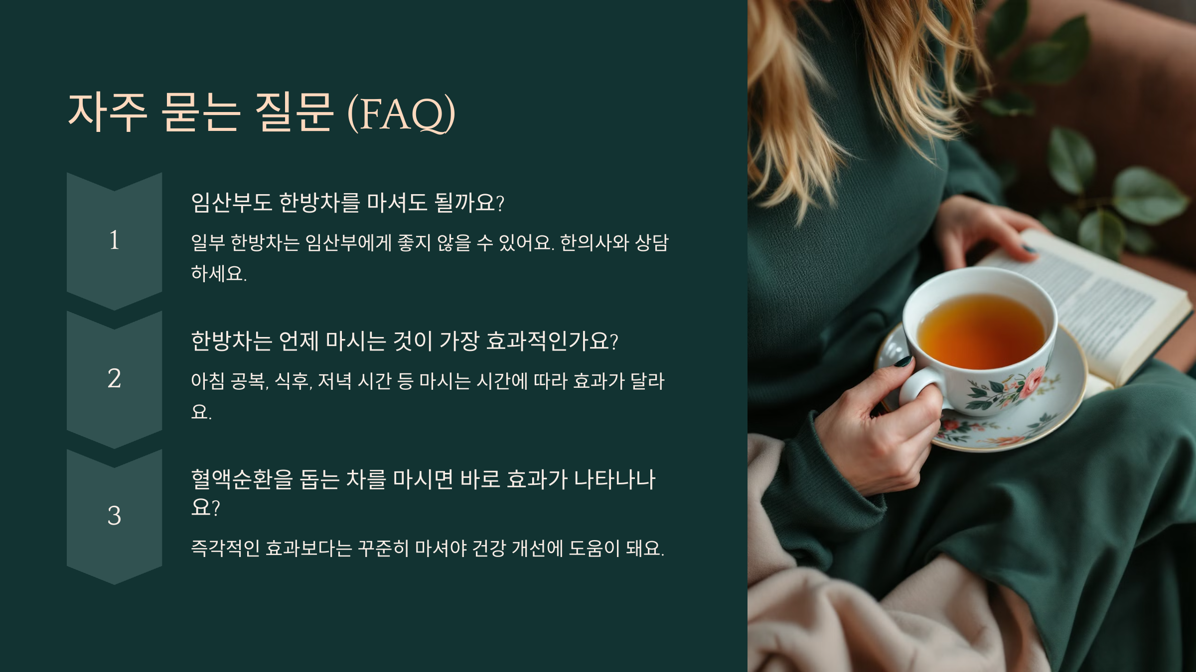 이런 한방차를 꾸준히 마시면 혈액순환을 개선하고 건강을 유지하는 데 큰 도움이 돼요. 하지만 아무리 좋은 차라도 올바르게 마셔야 효과를 극대화할 수 있겠죠? 🍵