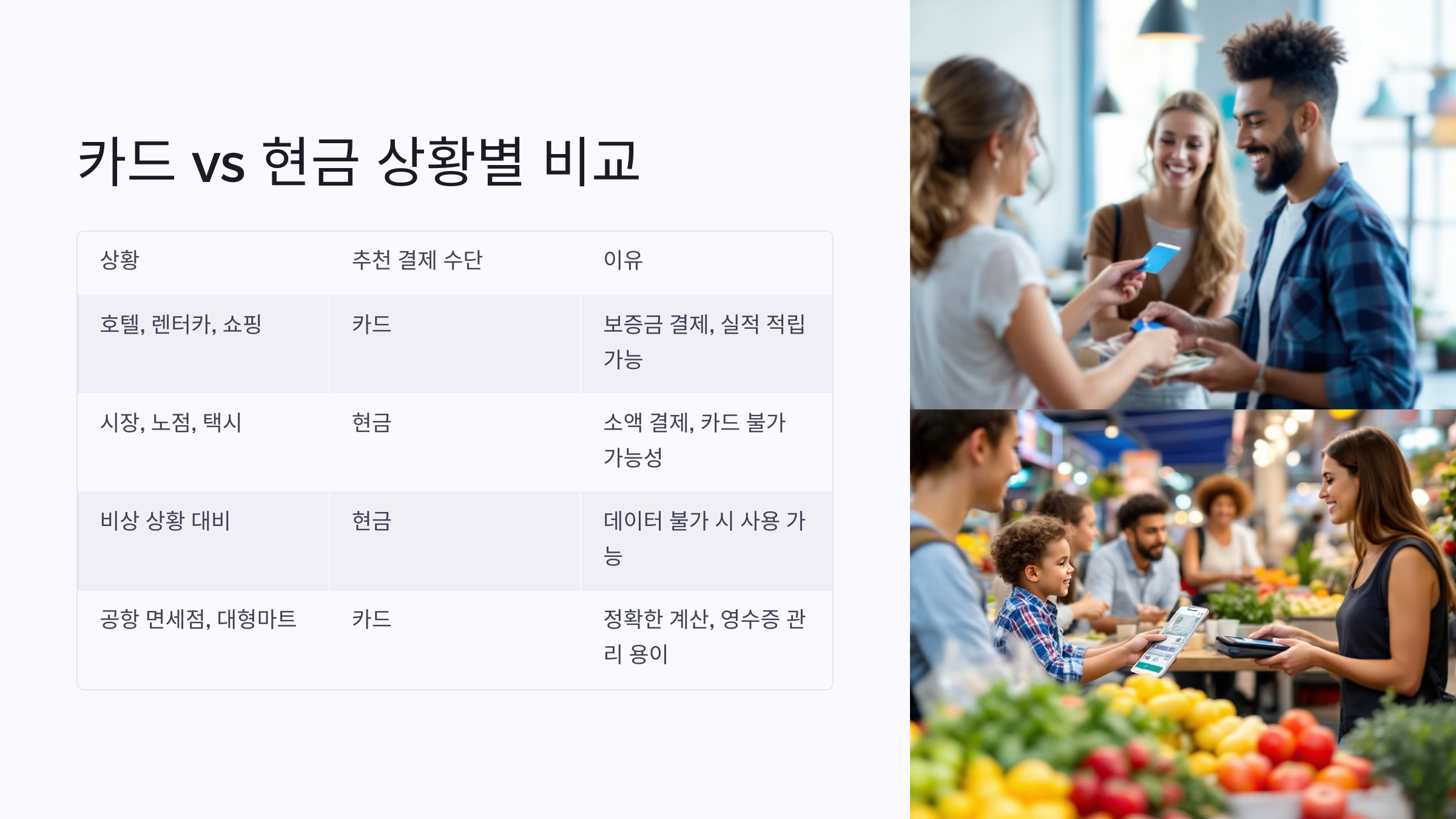카드와 현금, 각각의 장점을 잘 활용하면 더 스마트한 여행이 가능해요. 유연한 준비가 최고의 방법이에요.