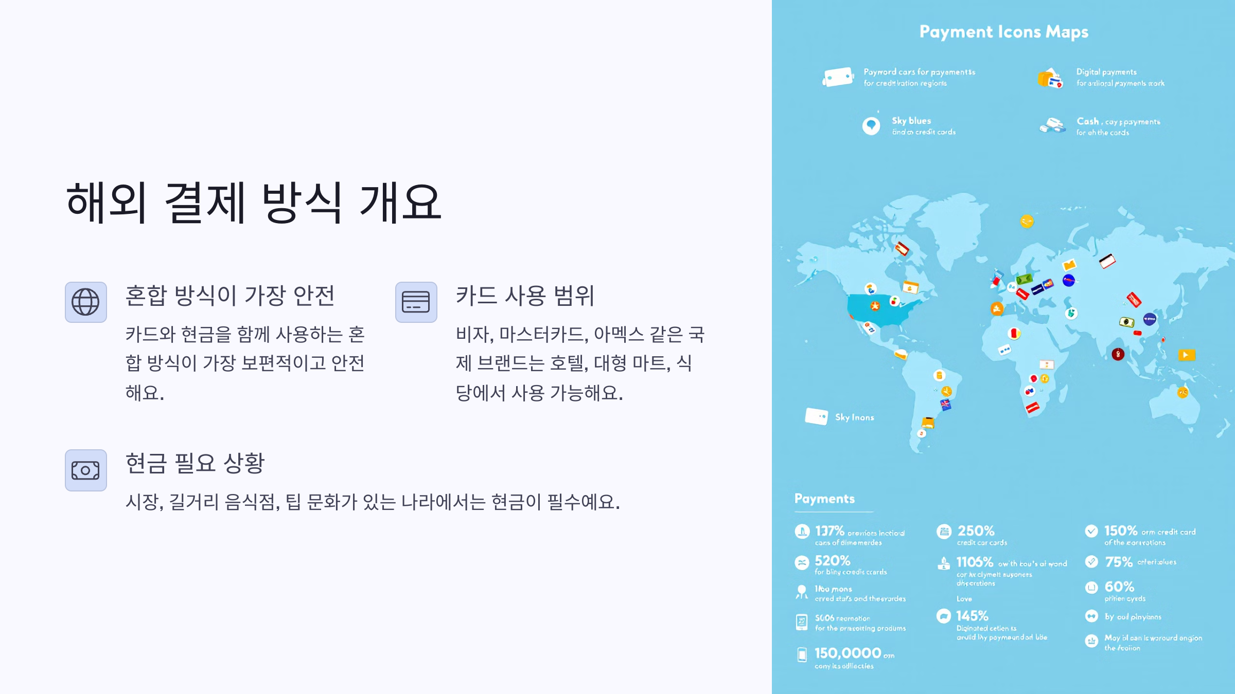 해외여행을 계획할 때 결제 수단을 어떤 방식으로 준비할지에 따라 여행의 편의성과 예산 관리가 달라져요. 일반적으로는 카드와 현금을 함께 사용하는 혼합 방식이 가장 보편적이고 안전하다고 알려져 있어요.
