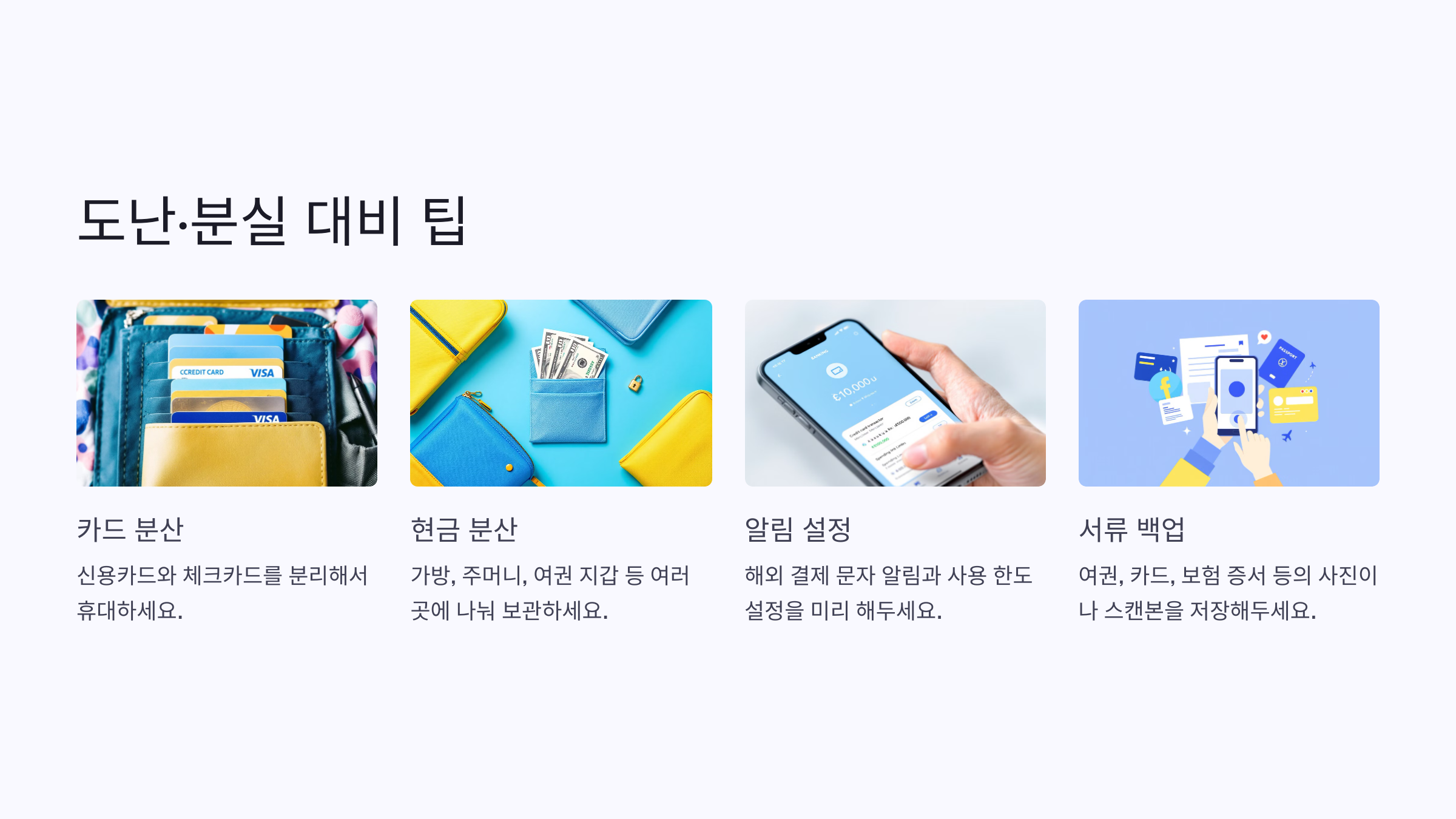 해외에서는 예기치 못한 도난이나 분실 상황이 발생할 수 있어요. 특히 카드나 현금을 분실하면 여행 일정 전체에 영향을 줄 수 있기 때문에, 사전에 대비하는 게 정말 중요해요. 준비만 잘해도 위기 상황을 훨씬 가볍게 넘길 수 있어요.