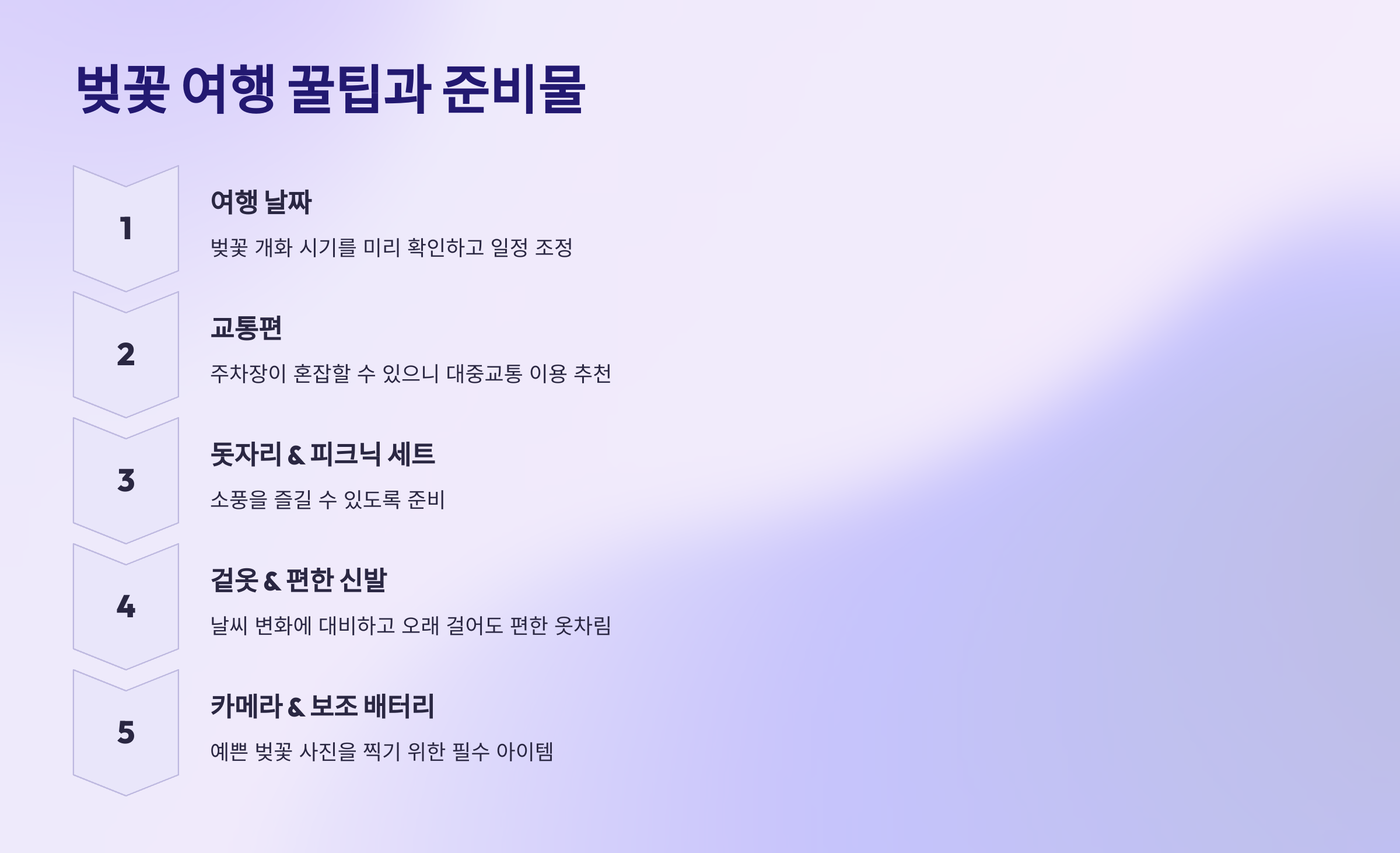 이제 배도 채웠으니 벚꽃 여행을 더욱 알차게 즐기기 위한 꿀팁과 준비물도 알아볼까요? 🎒