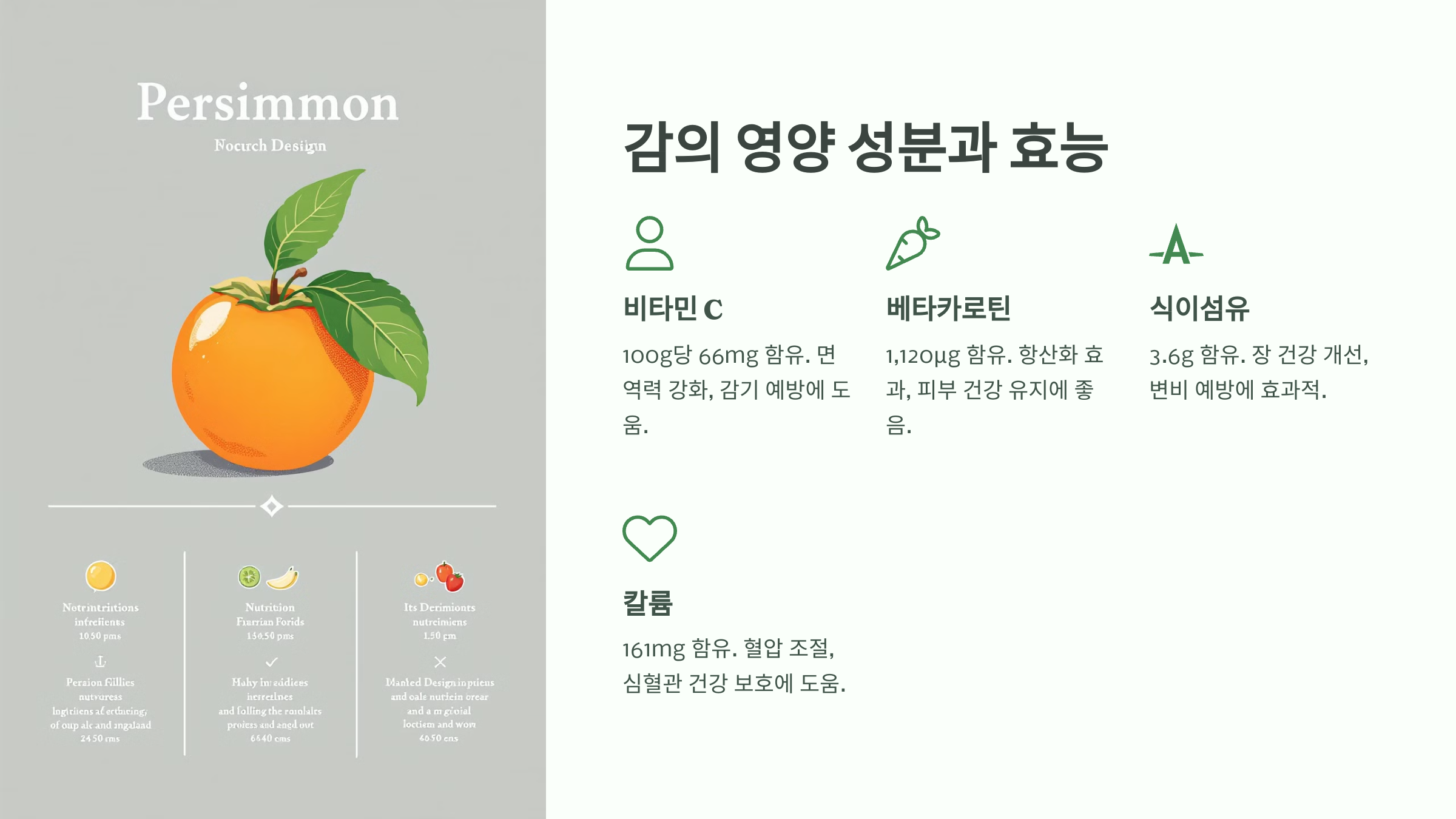 감은 단순히 맛있는 과일이 아니라 건강에도 많은 이점을 주는 슈퍼푸드예요. 감의 역사와 효능을 살펴보고, 감을 활용한 맛있는 요리법까지 알아볼까요? 😊