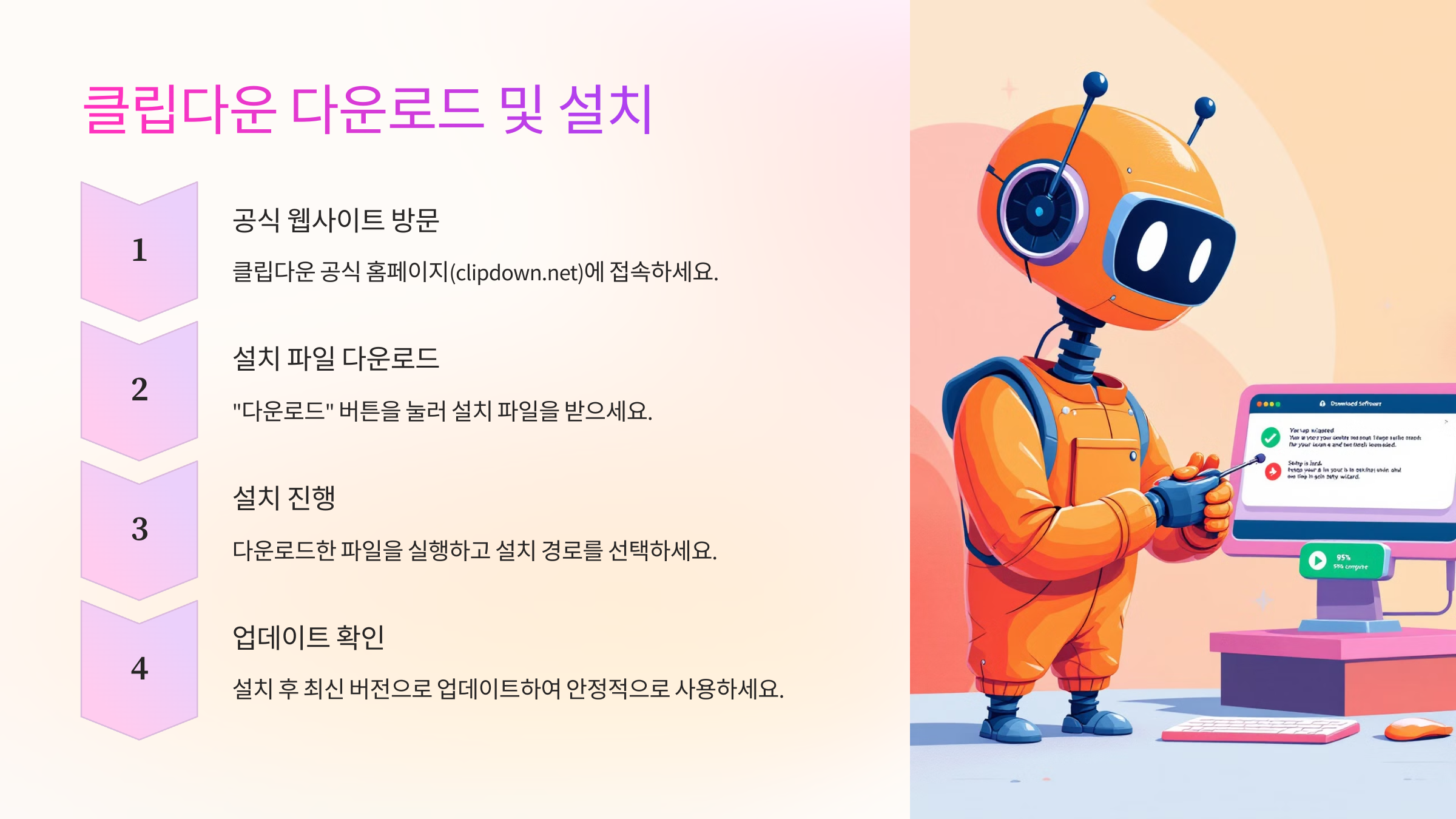 클립다운을 사용하려면 먼저 프로그램을 다운로드하고 설치해야 해요! 🎧 아래 단계에 따라 안전하게 설치하는 방법을 알려드릴게요. 😊