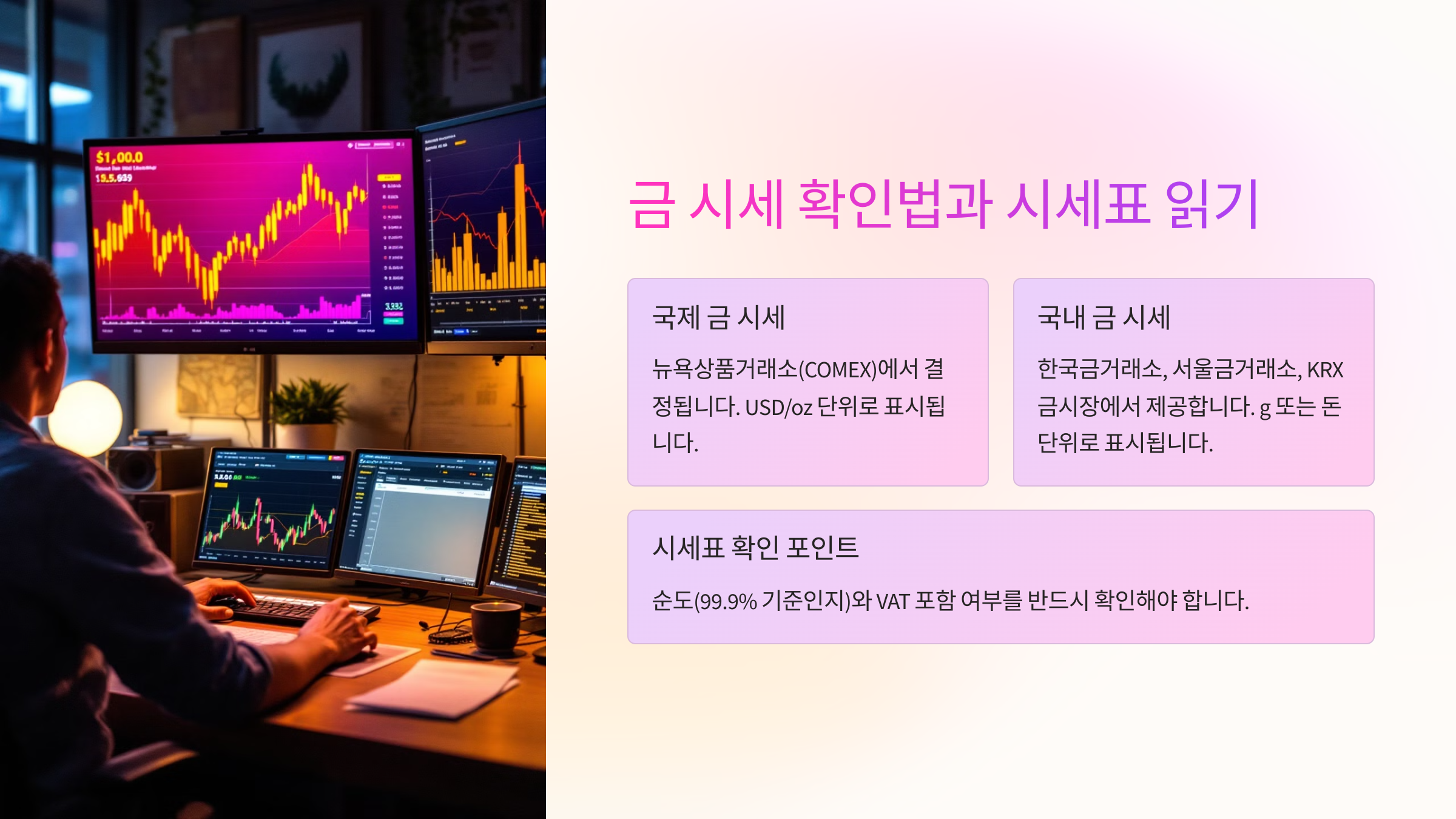 📈 시세표는 단순 가격 정보가 아니라, 투자 타이밍과 비교 기준이 되는 핵심 데이터예요. 단위와 세금, 순도만 알면 누구나 쉽게 읽을 수 있어요!