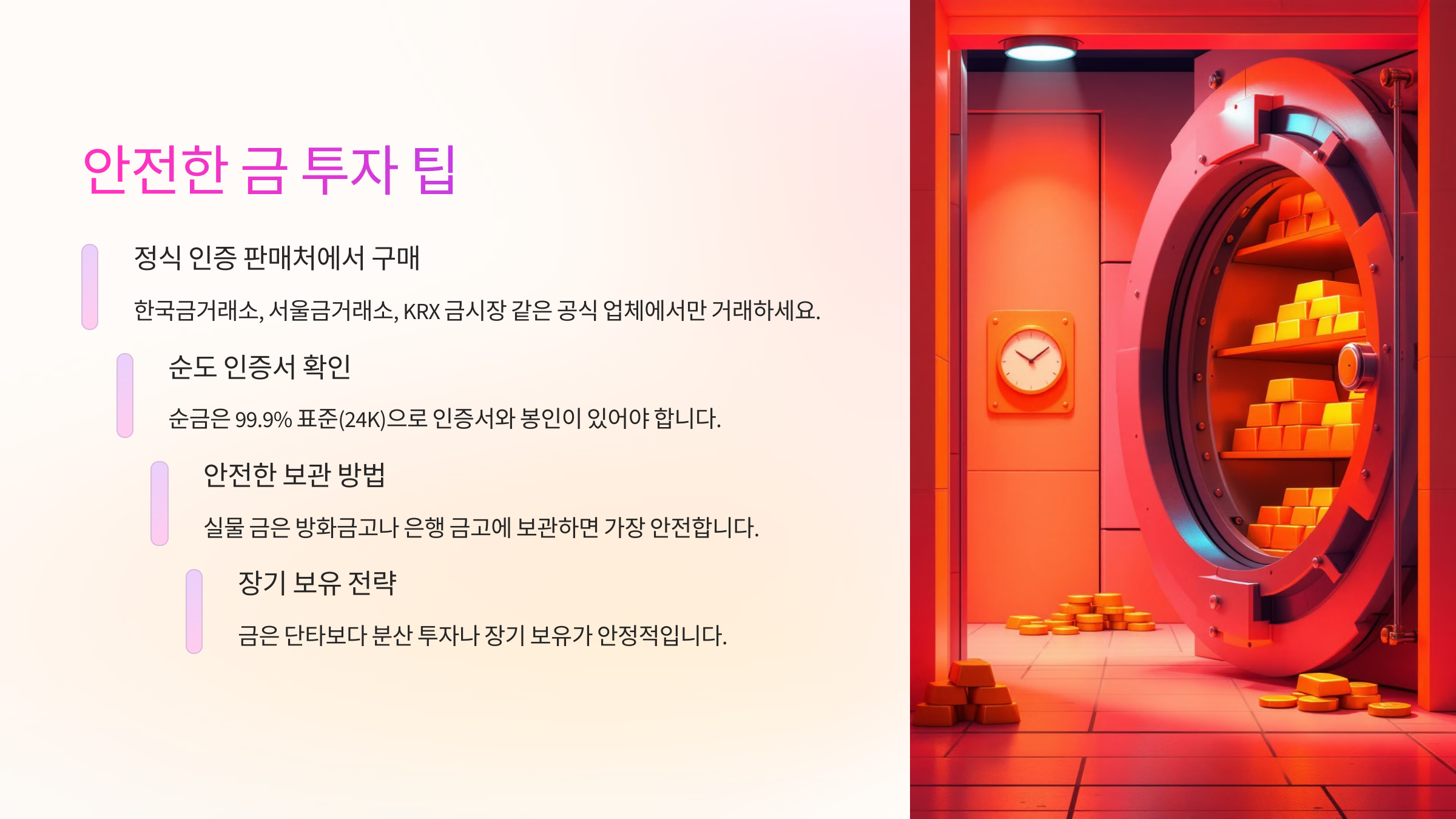 🔐 금 투자, 안전하게만 한다면 아주 든든한 자산이 될 수 있어요. 진짜 금이 내 손안에 들어오는 기분, 생각보다 짜릿해요!