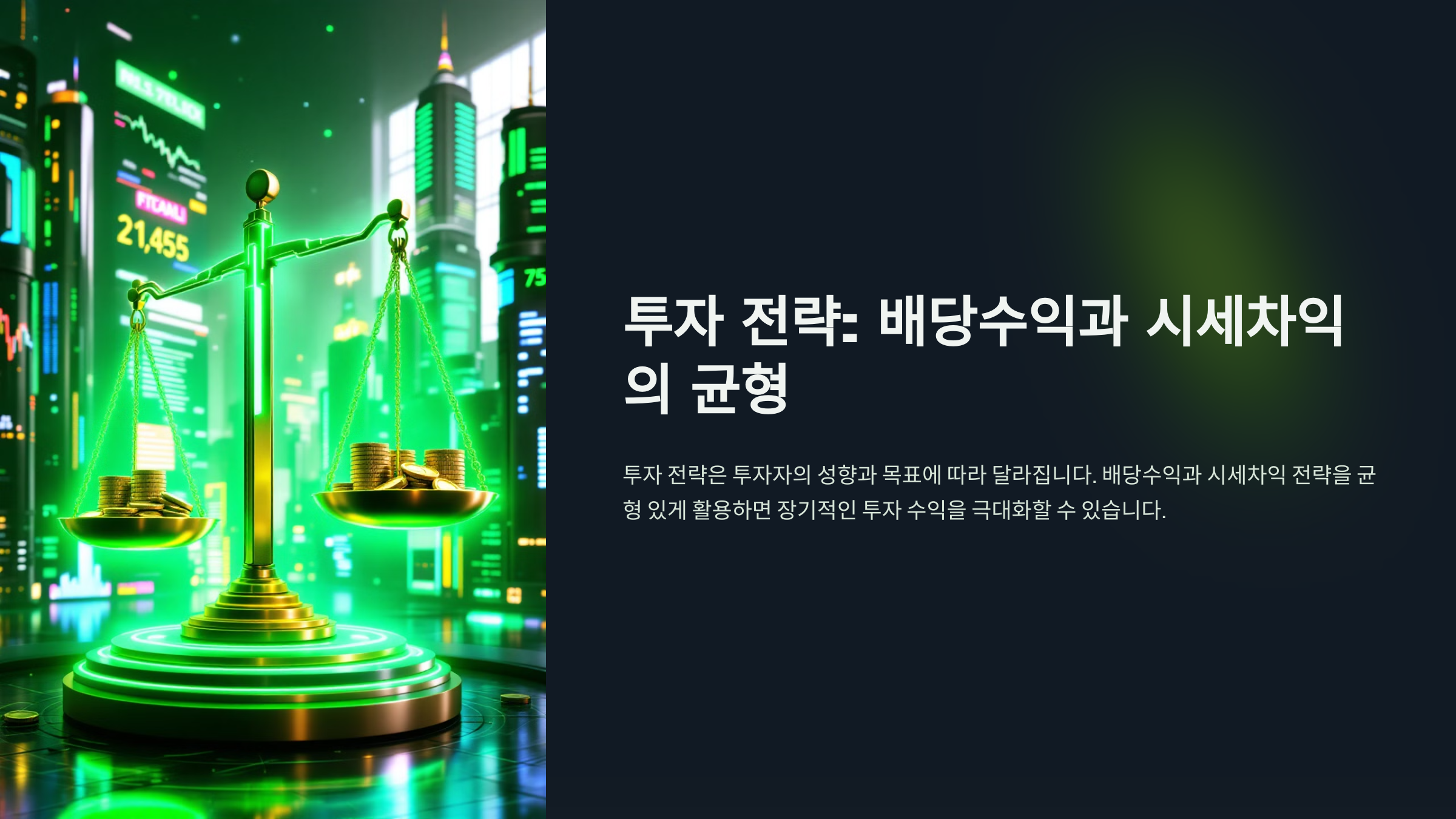 그러나 배당수익과 시세차익을 함께 고려하면 장기적인 투자 수익을 극대화할 수 있어요. 기업의 실적, 시장 동향을 잘 분석해 두 가지 전략을 균형 있게 활용해 보세요!