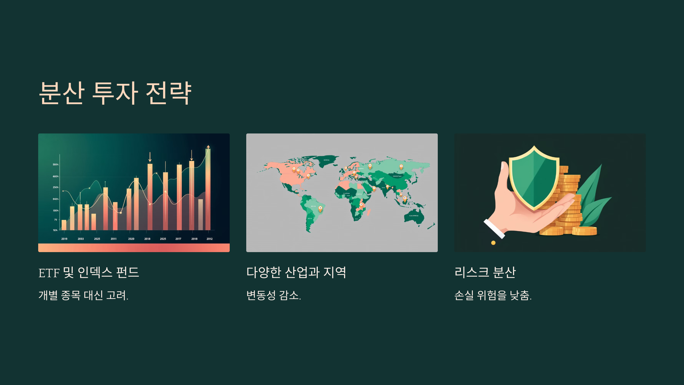 분산 투자는 특정 자산의 손실 위험을 낮추는 효과가 있습니다.