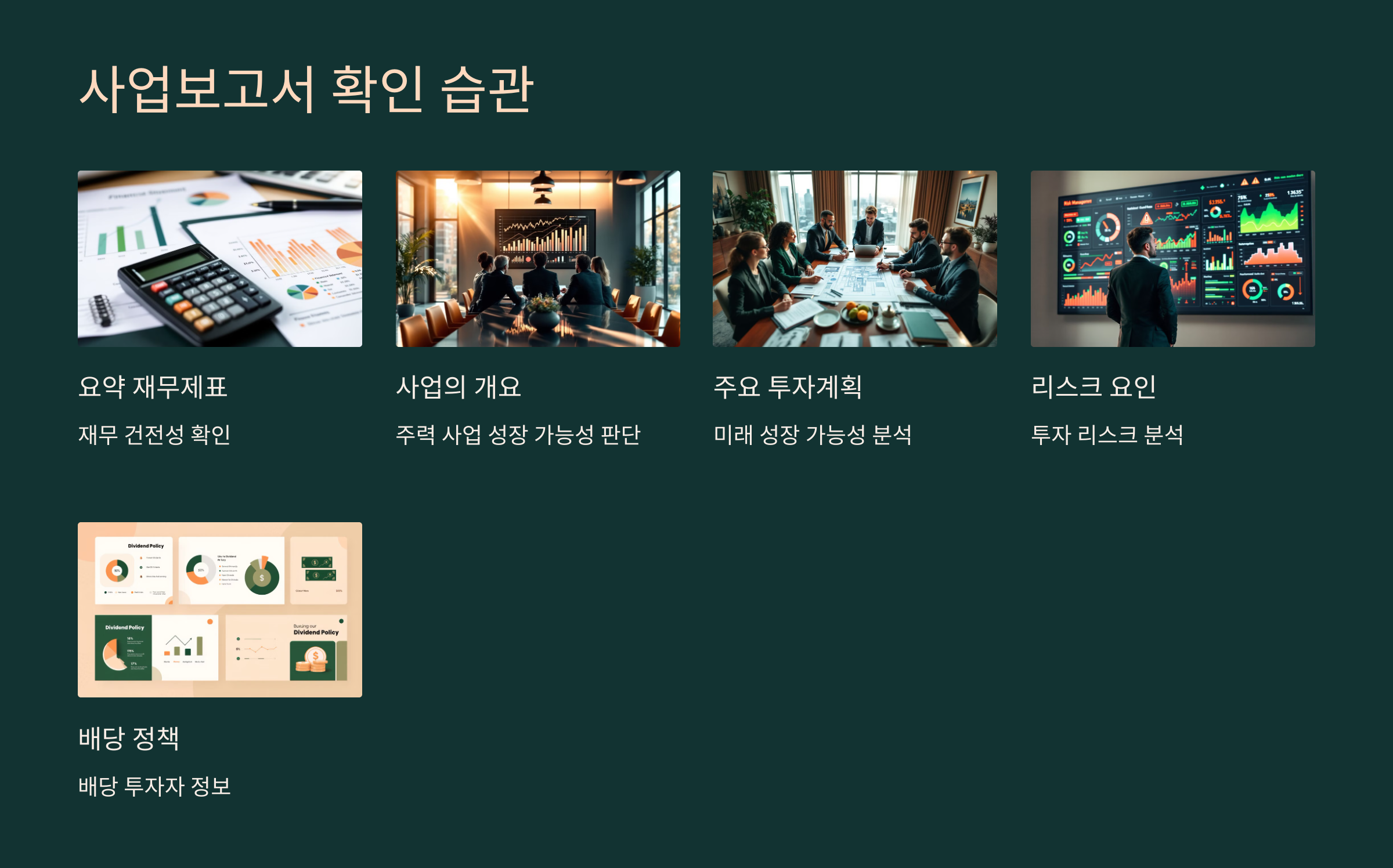 그럼 사업보고서에서 꼭 확인해야 할 핵심 항목들을 살펴볼까요? 👇