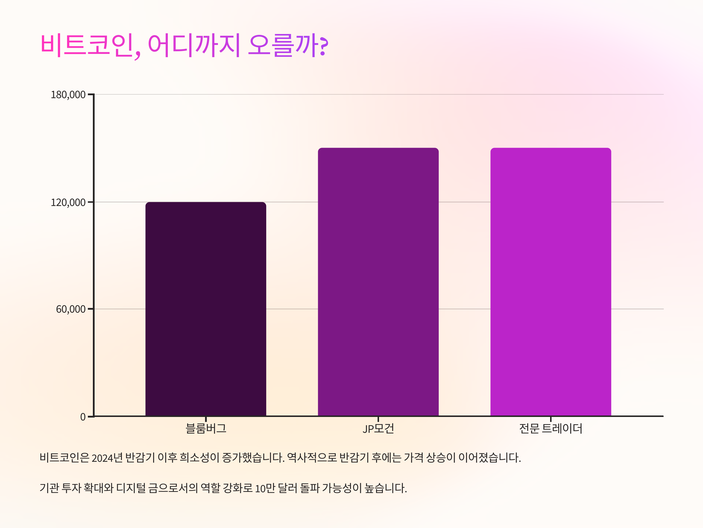 비트코인은 2024년 4월 반감기를 거치면서 공급량이 줄어들었어요. 역사적으로 반감기 이후에는 가격 상승이 이어졌죠. 2025년에도 비슷한 흐름이 예상되며, 비트코인이 사상 최고가를 경신할 가능성이 높아요. 📈