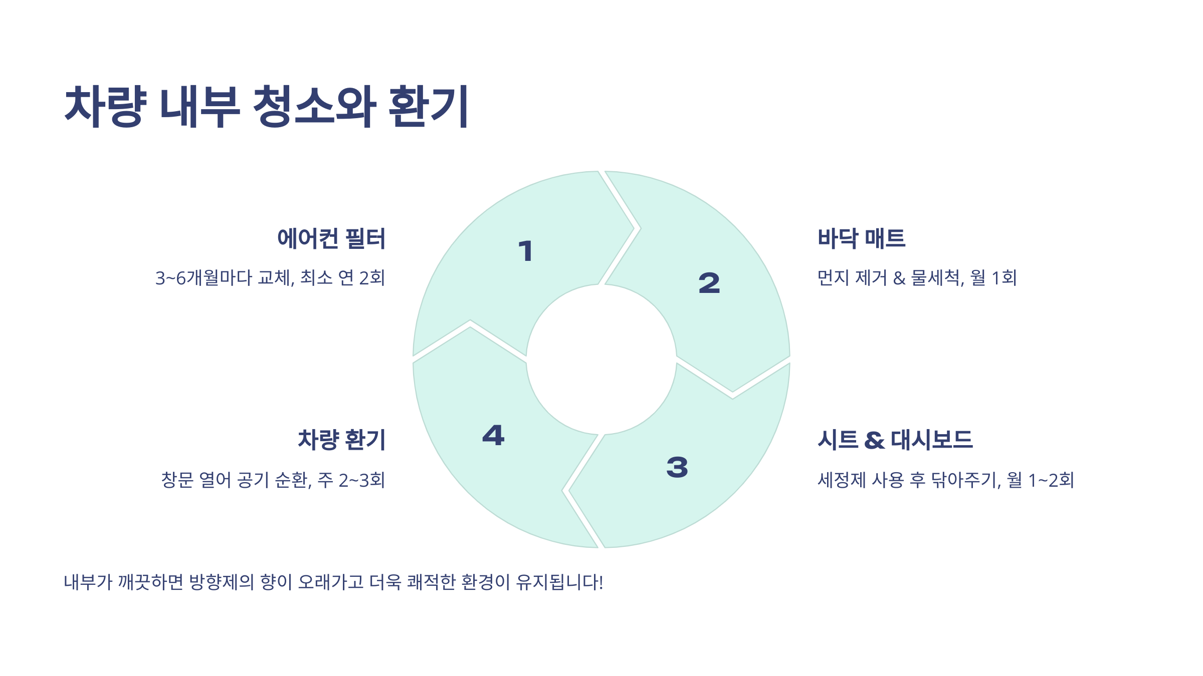 차량 내부가 깨끗할수록 방향제의 효과도 더 오래 지속돼요! 🚗✨
