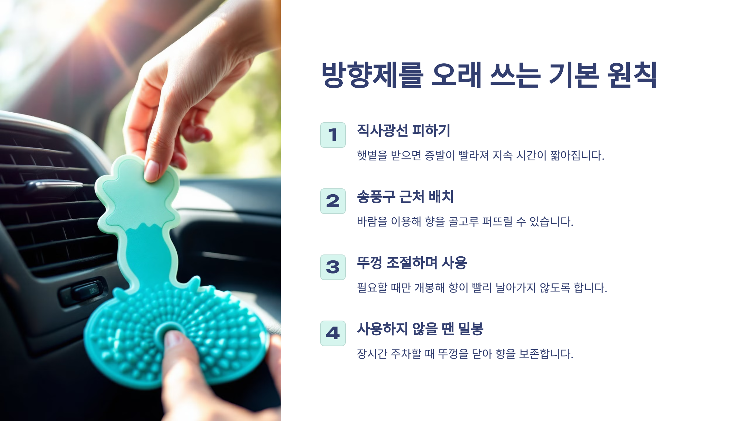 차량용 방향제를 오래 사용하려면 몇 가지 기본 원칙을 지켜야 해요! 🚗✨