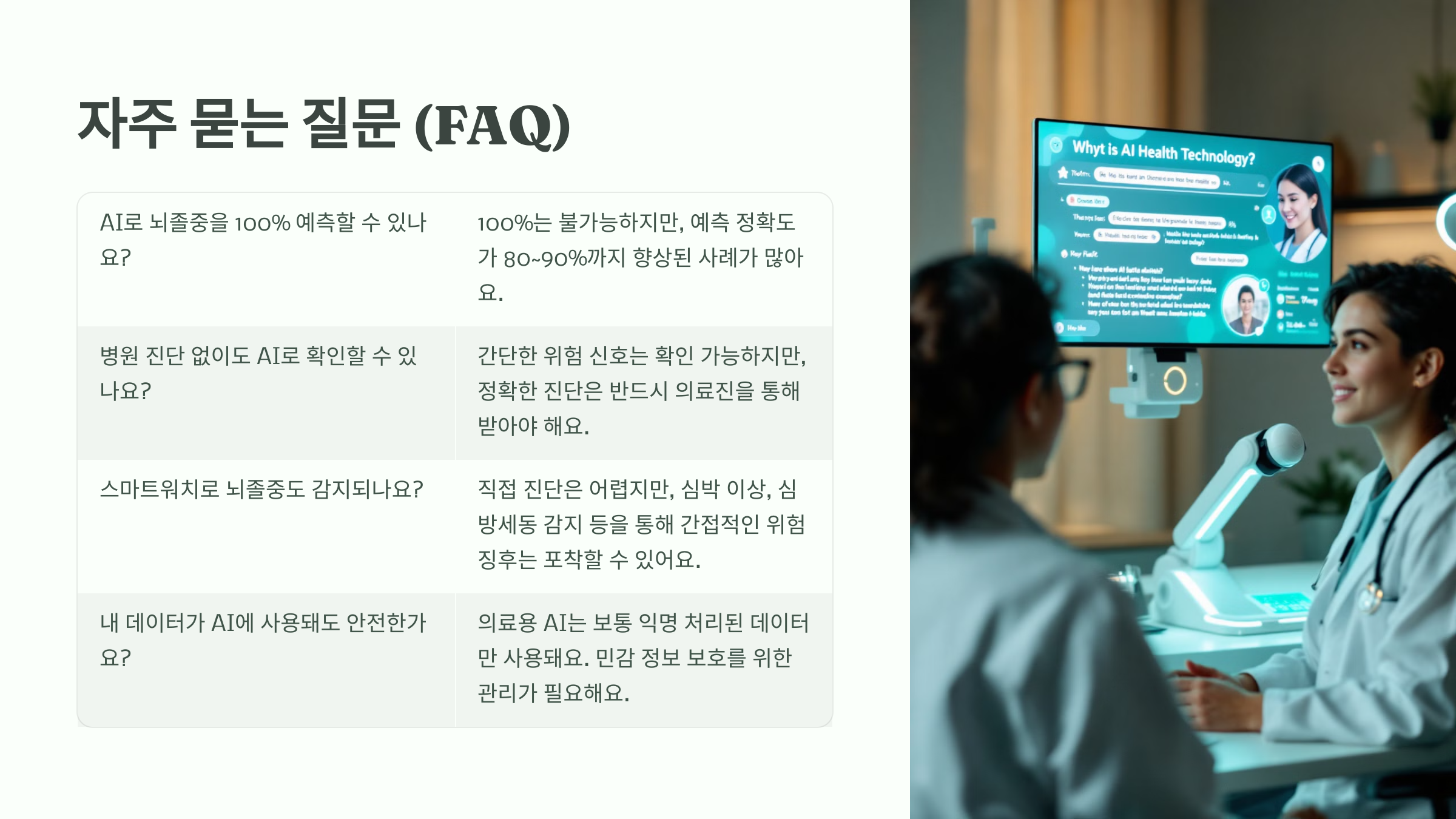 이제 마지막으로, 많은 분들이 궁금해하셨던 뇌졸중 AI 관련 질문을 FAQ로 정리해드릴게요 📌
