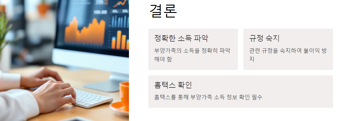 이러한 조치는 납세자의 실수를 줄이고, 정확한 연말정산을 돕기 위한 것입니다. 따라서 홈택스에 접속하여 부양가족의 소득 정보를 확인하고, 소득 기준을 초과한 부양가족이 포함되어 있지 않은지 반드시 확인해야 합니다.