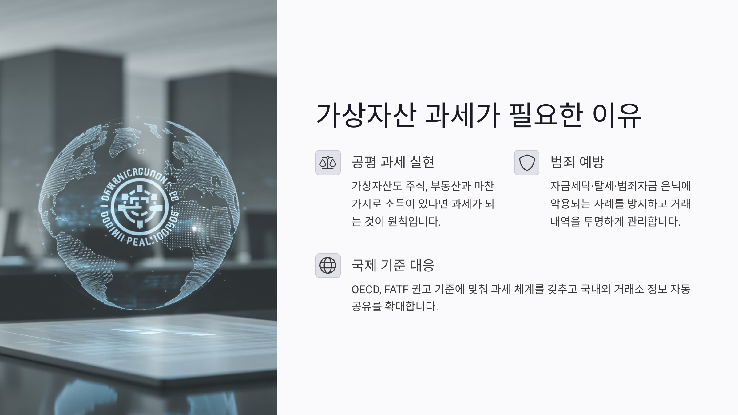 우리나라 정부도 이러한 흐름을 반영해 2025년부터 가상자산에 대한 과세를 본격 도입</strong했어요. 단순히 규제 차원을 넘어서, 투자자 보호와 조세 형평성을 실현하기 위한 중요한 정책 변화죠.
