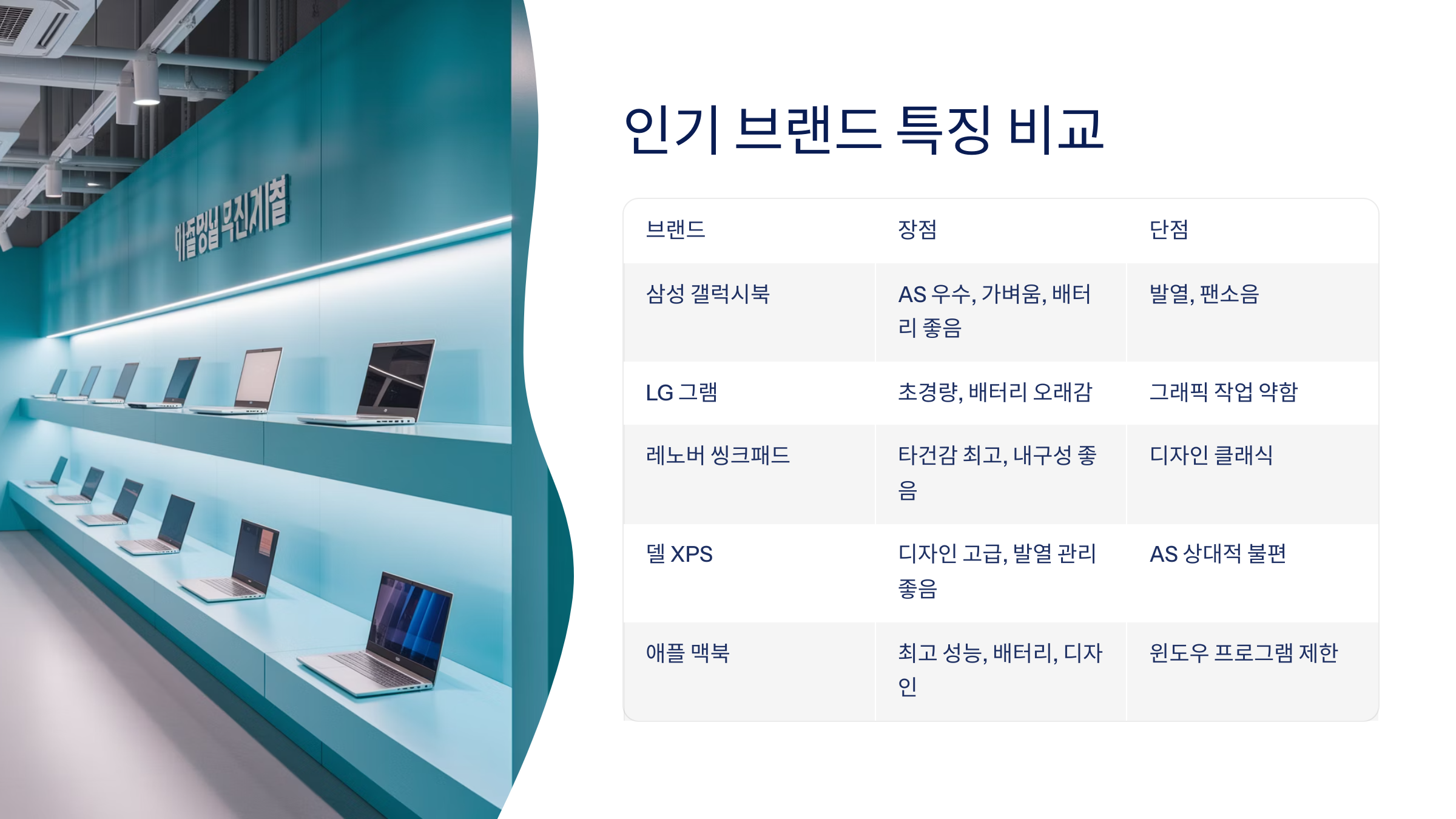 업무용 노트북 고를 때 브랜드별 특성을 아는 건 정말 중요해요. 같은 가격대여도 브랜드마다 장점과 단점이 확실히 다르거든요.