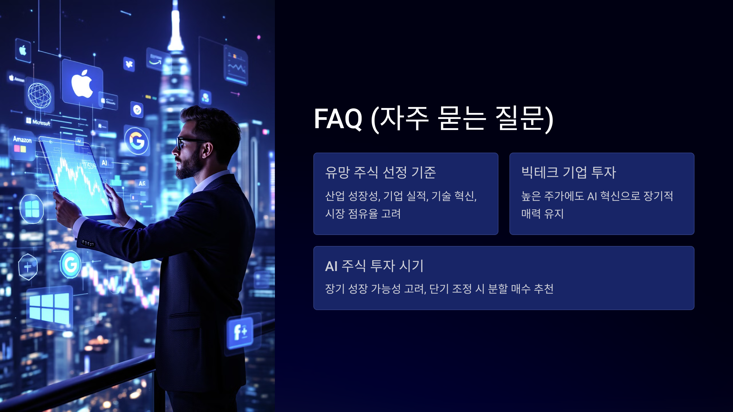 AI 주식은 장기적인 성장 가능성이 크므로, 단기 조정을 활용해 분할 매수하는 전략이 유효합니다.